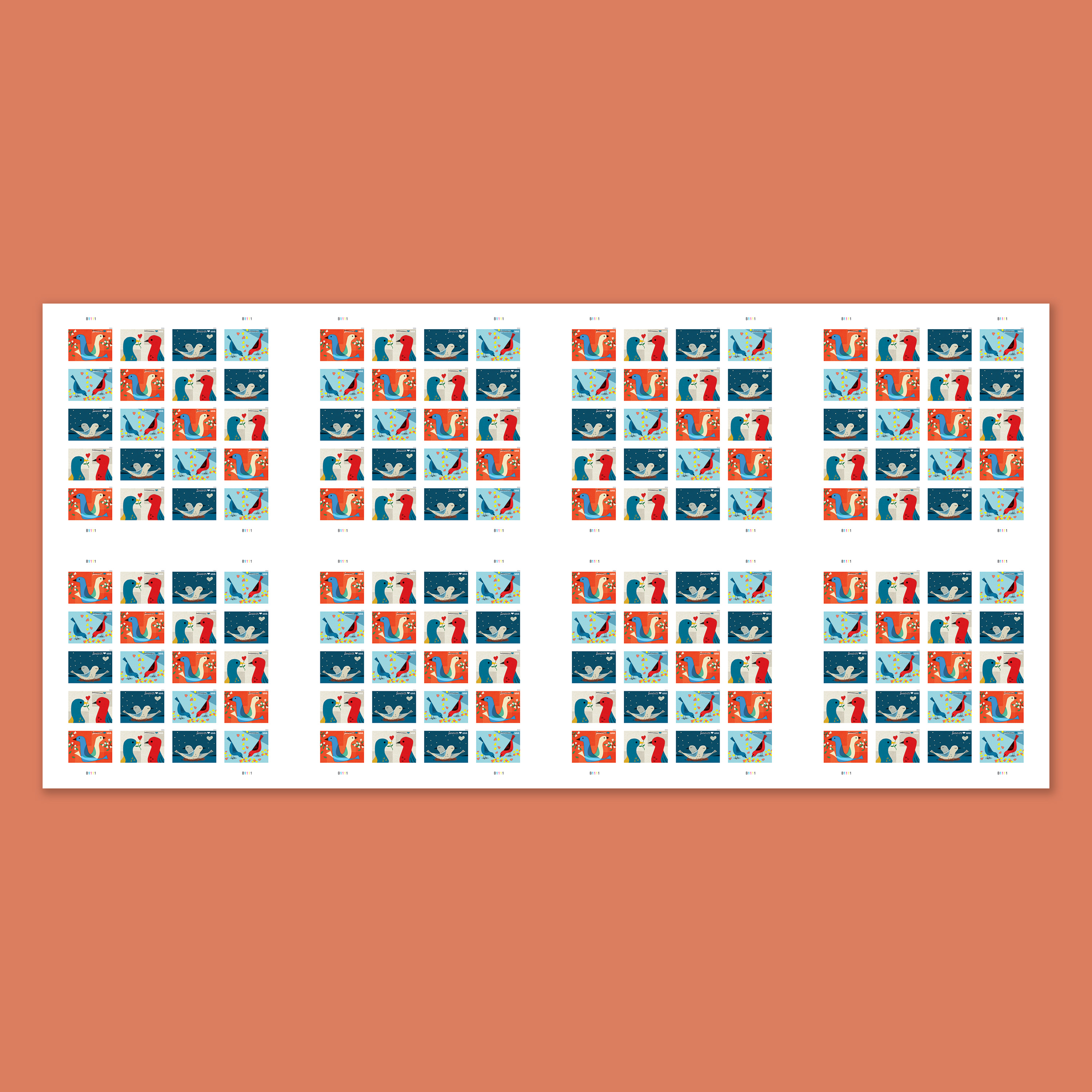 Be charmed by sweet and adoring birds with the Love Press Sheet without Die Cuts. The press sheet does not include perforations and features the colorful and playful designs from the Love Forever® stamp sheet.