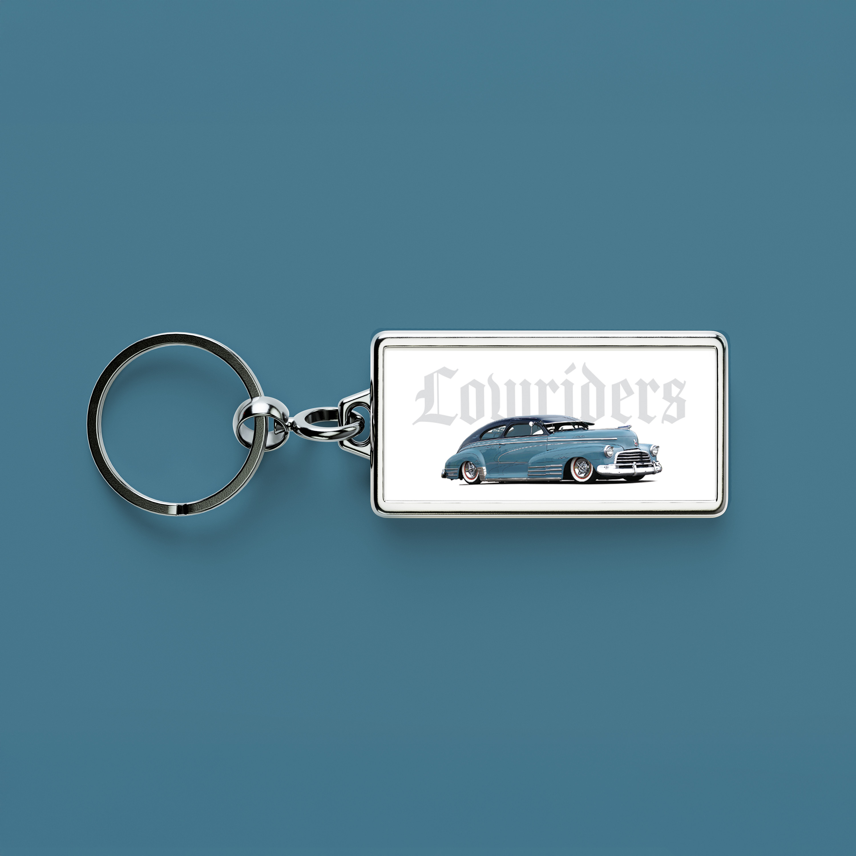 Outfit your keys with the Lowriders Keychain. The keychain highlights the blue 1946 Fleetline from the stamp art.