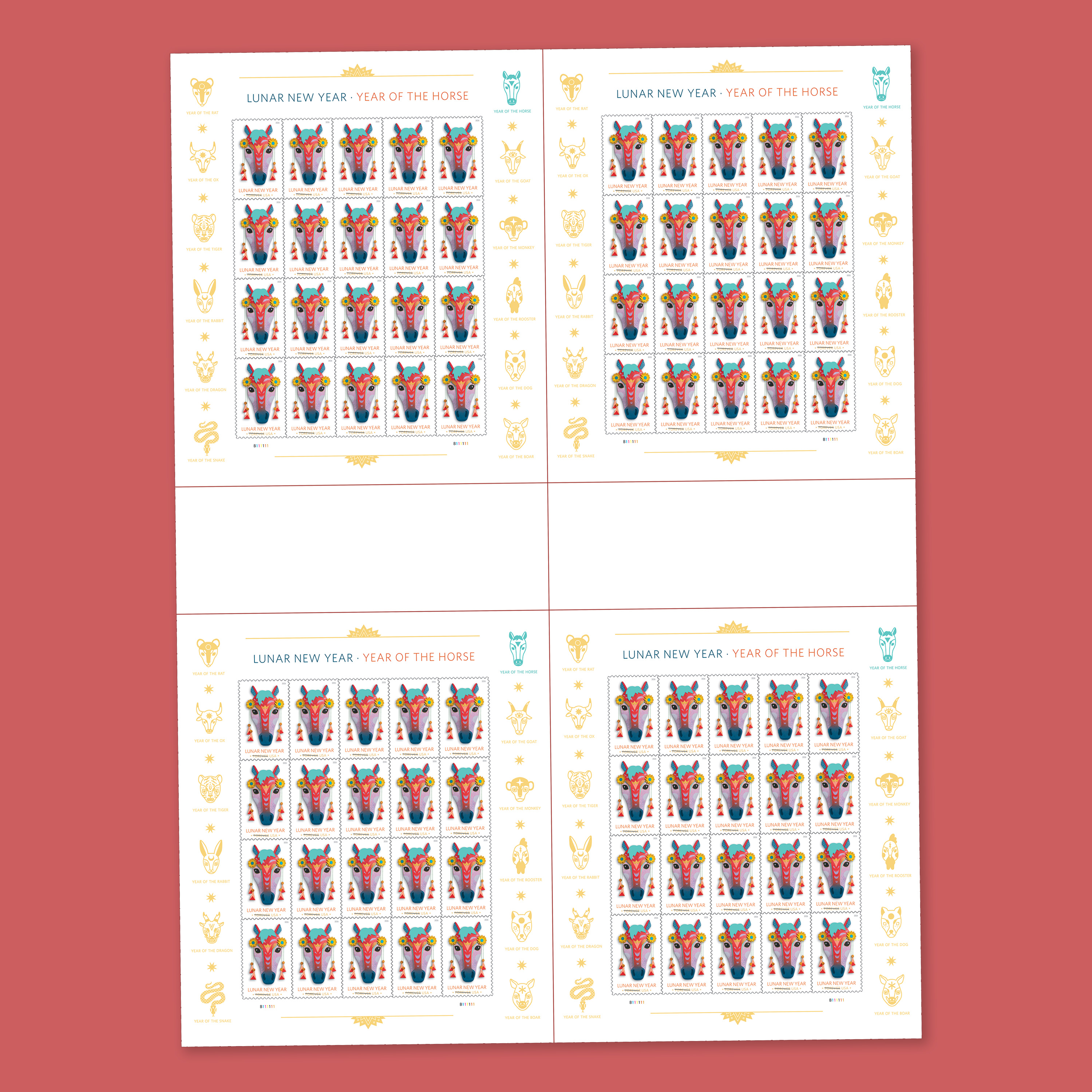Ring in the new year with the Lunar New Year • Year of the Horse Press Sheet with Die Cuts. The press sheet includes perforations and features the design from the Lunar New Year • Year of the Horse Forever® stamp sheet.