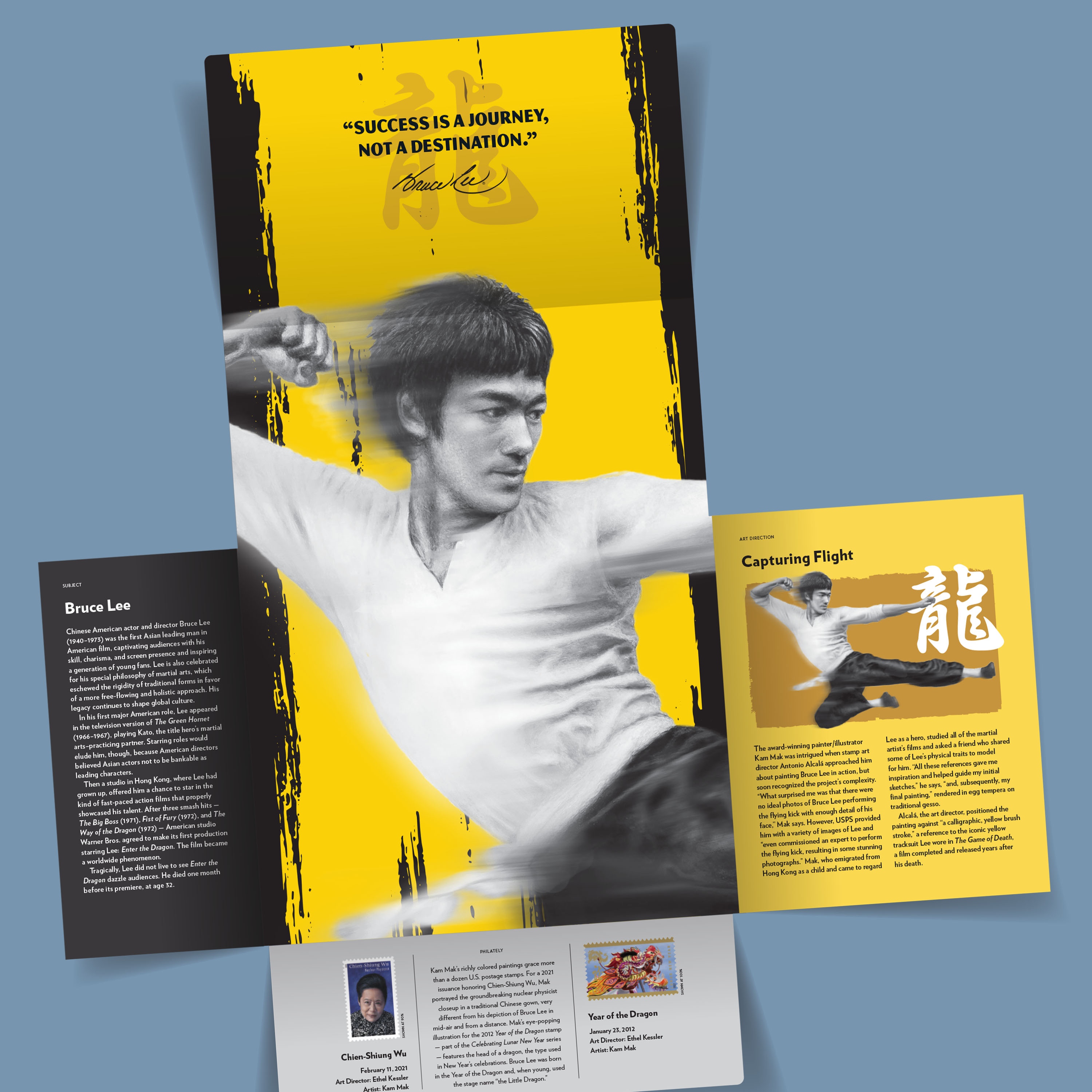 Honor a Chinese American martial artist, actor, and filmmaker and learn about the design process for his stamps with the Bruce Lee Stamp Portfolio.