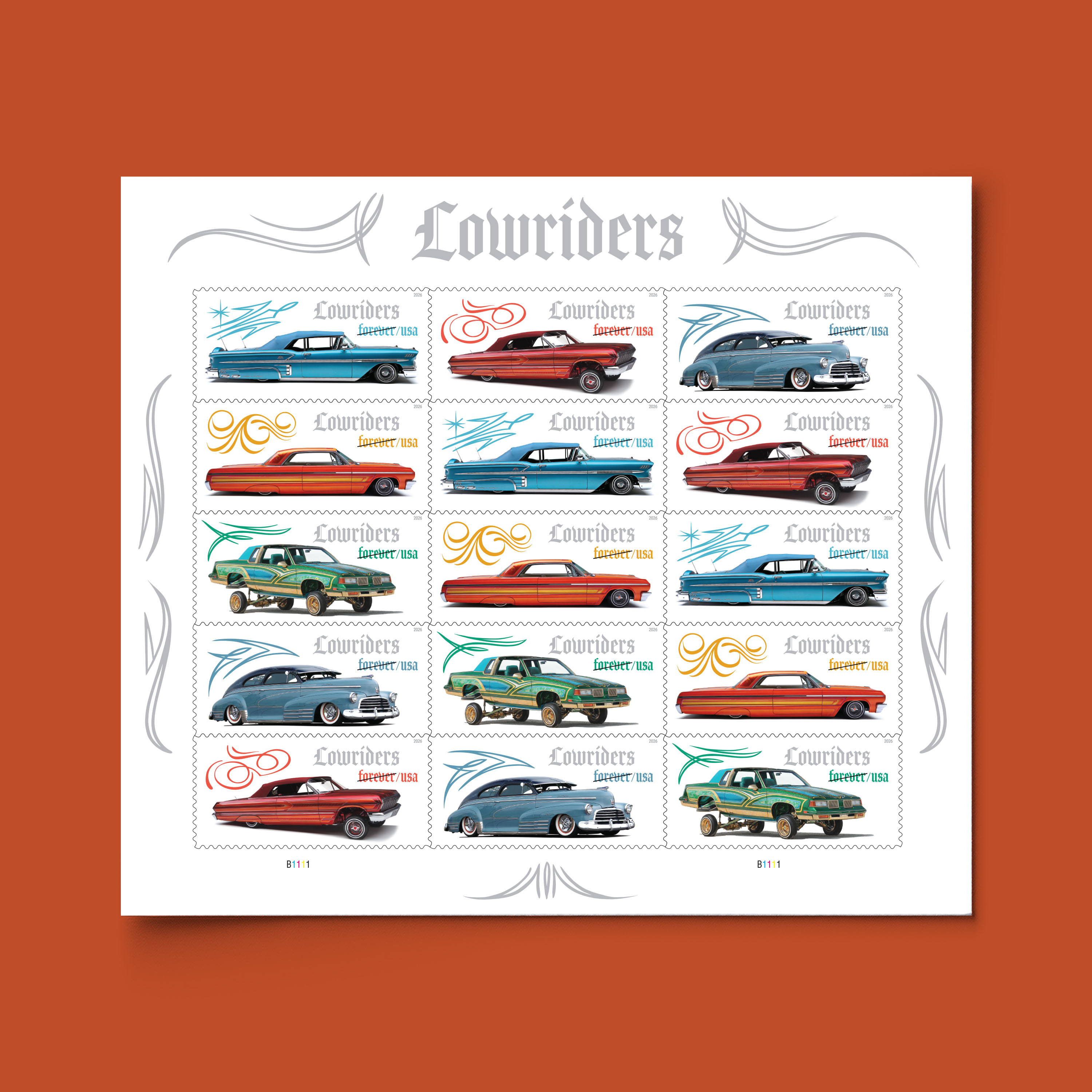 Celebrate a culture that originated in the working-class Mexican American/Chicano communities throughout the American Southwest with the Lowriders Forever® stamps. Available in sheets of 15, these stamps showcase 5 dazzling car models.