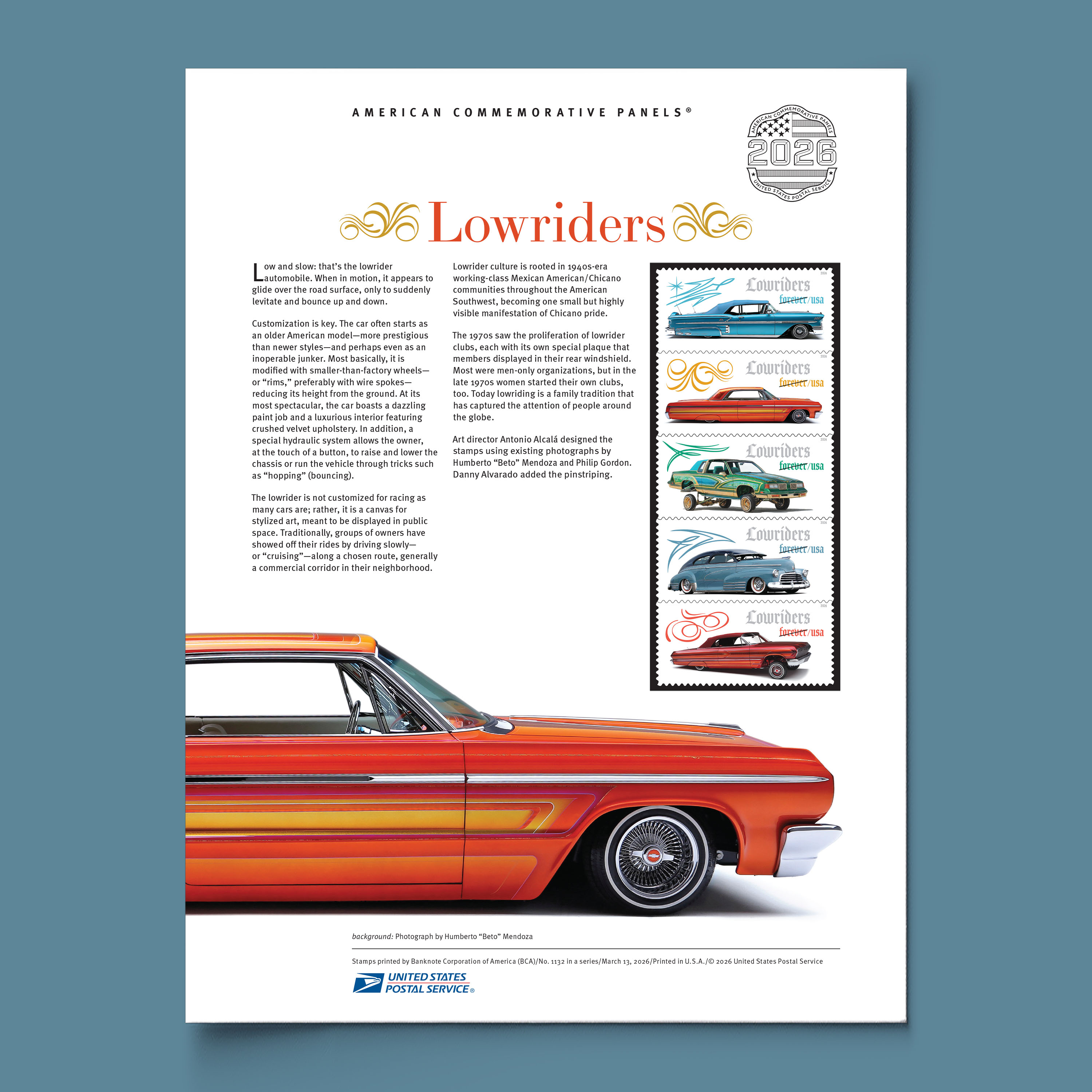Celebrate a unique culture of the American Southwest and the release of these dazzling stamps with the Lowriders Commemorative Panel.