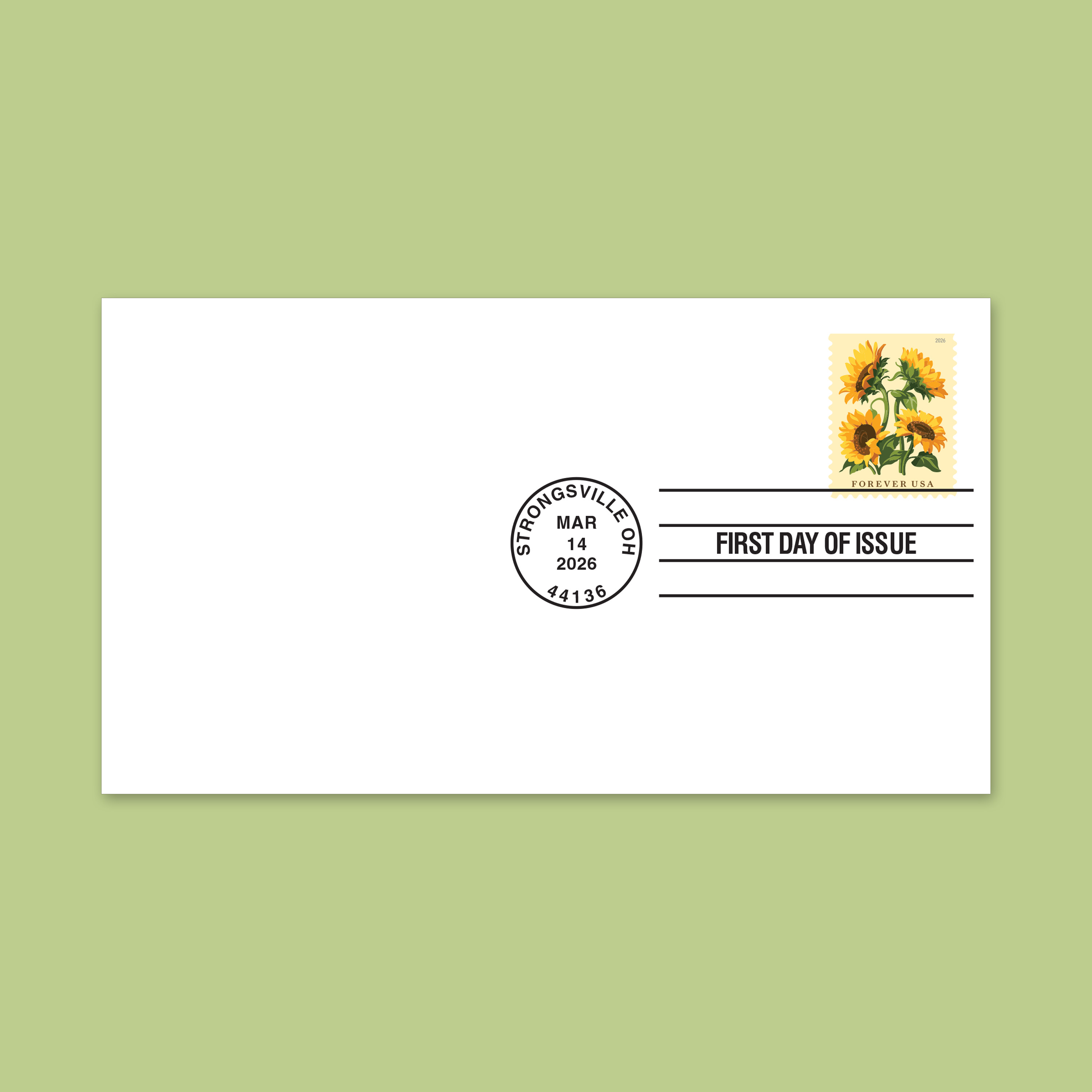 Celebrate a popular native plant with the Sunflowers First Day Cover. The collectible envelope features the Sunflowers Forever® stamp canceled with the official First Day of Issue postmark.