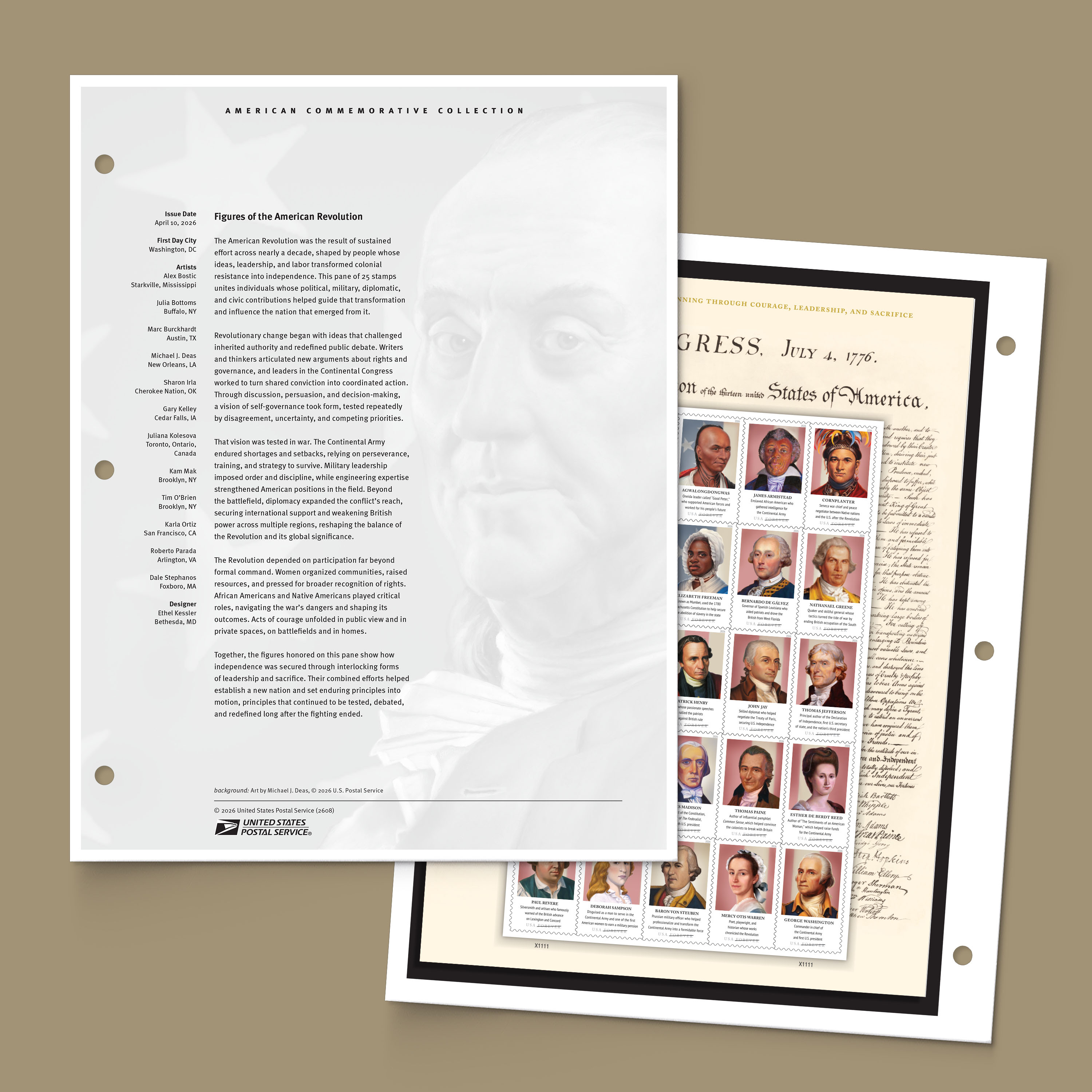 Meet 25 individuals who played pivotal roles during the American Revolution. Listen to their stories, explore their actions, and encounter the artists who painted their portraits in this commemorative stamp issuance.