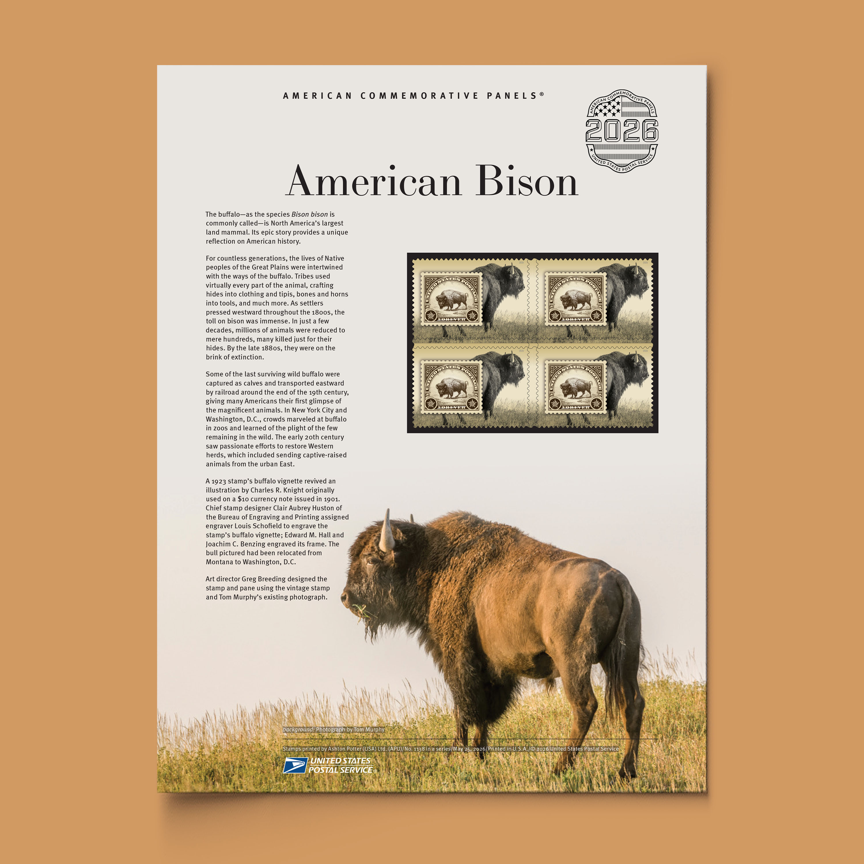Learn more about the epic story of the buffalo and its ties to American history with the American Bison Commemorative Panel.