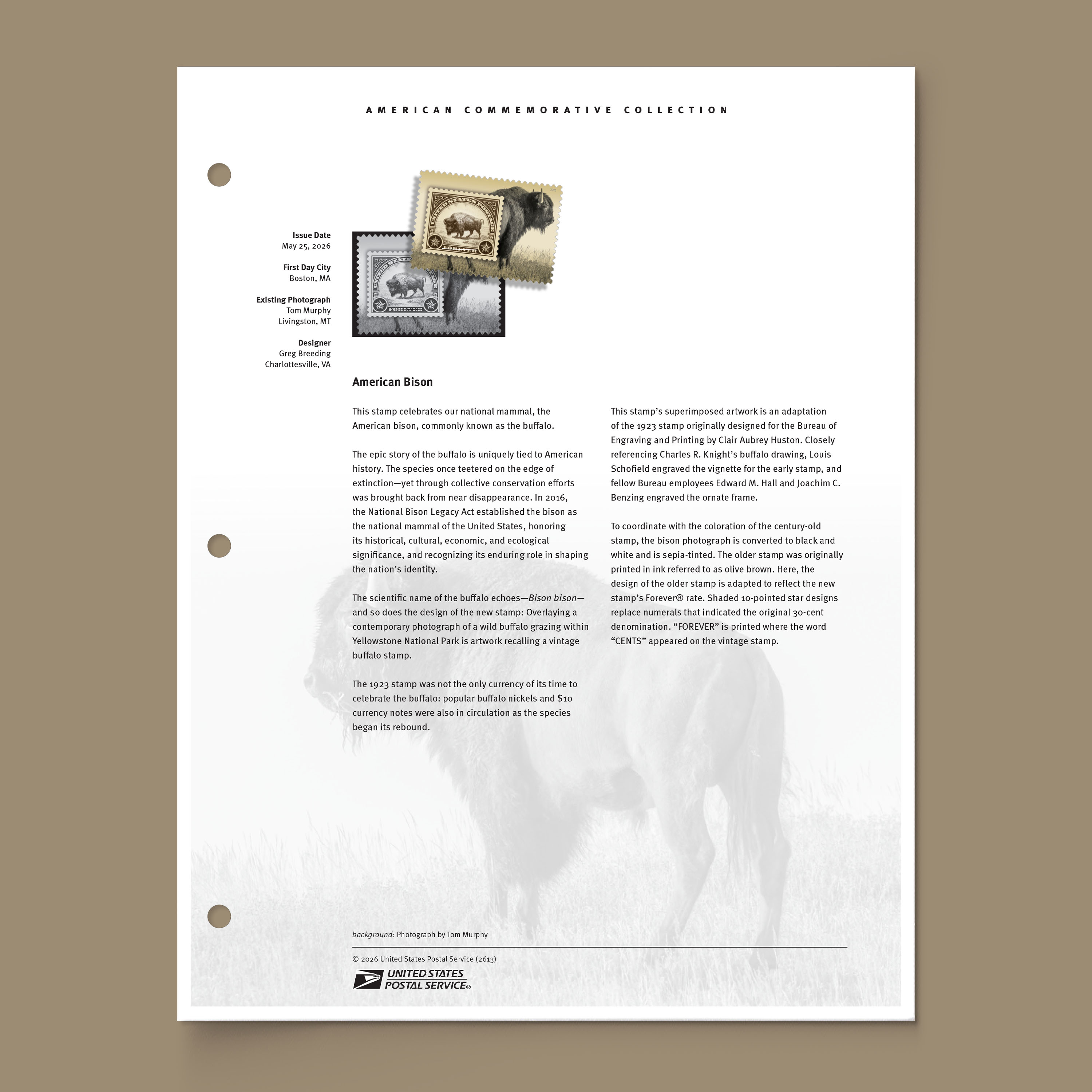 Honor the national mammal of the United States with the American Bison  American Commemorative Collection Page.