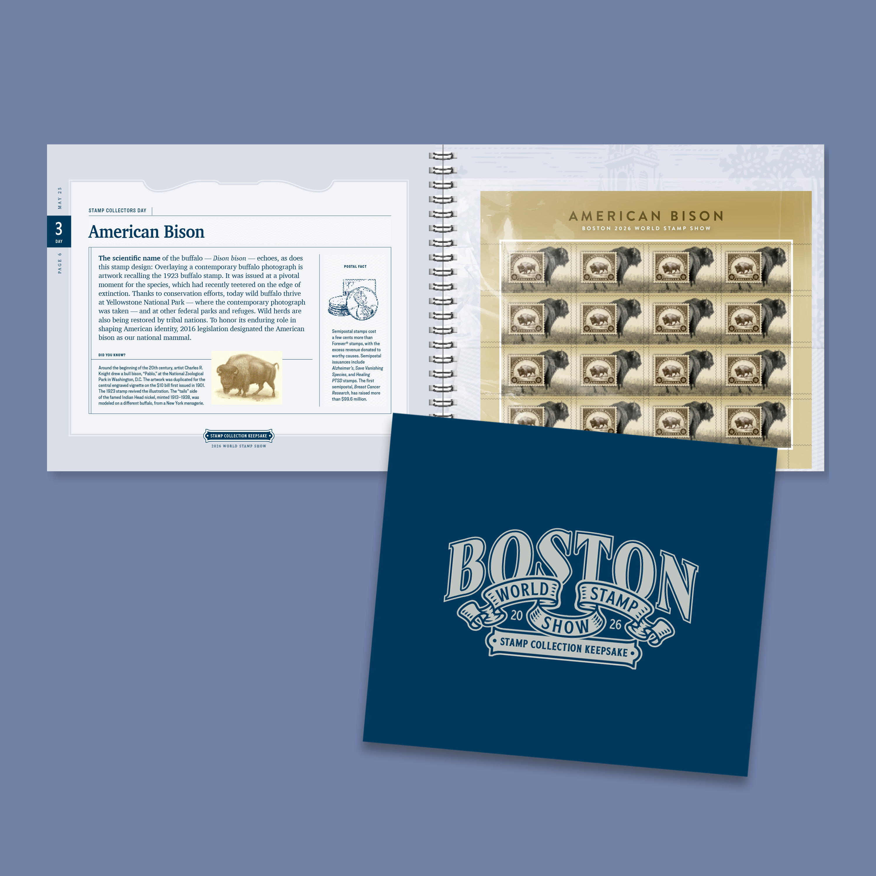 $39.95Coming SoonCollect all issuances from the 6 First Day of Issue Ceremonies hosted during the 2026 World Expo with this Boston 2026 World Stamp Show Keepsake.