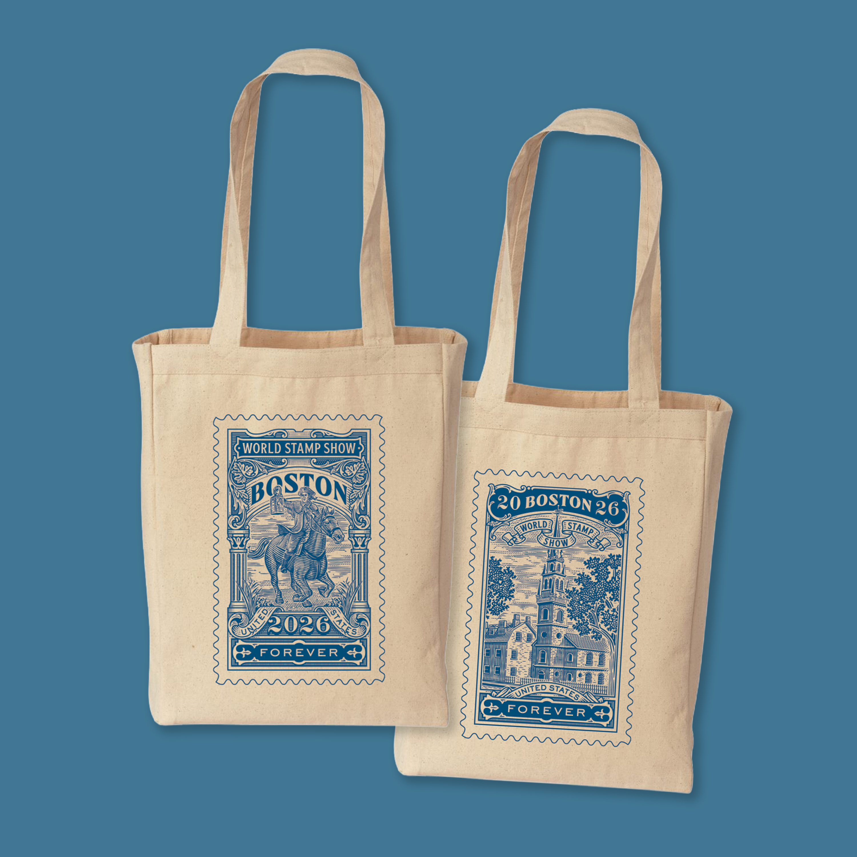 $18.95Coming SoonCarry all your philatelic additions to your collection in this cotton Boston 2026 World Stamp Show Tote Bag.