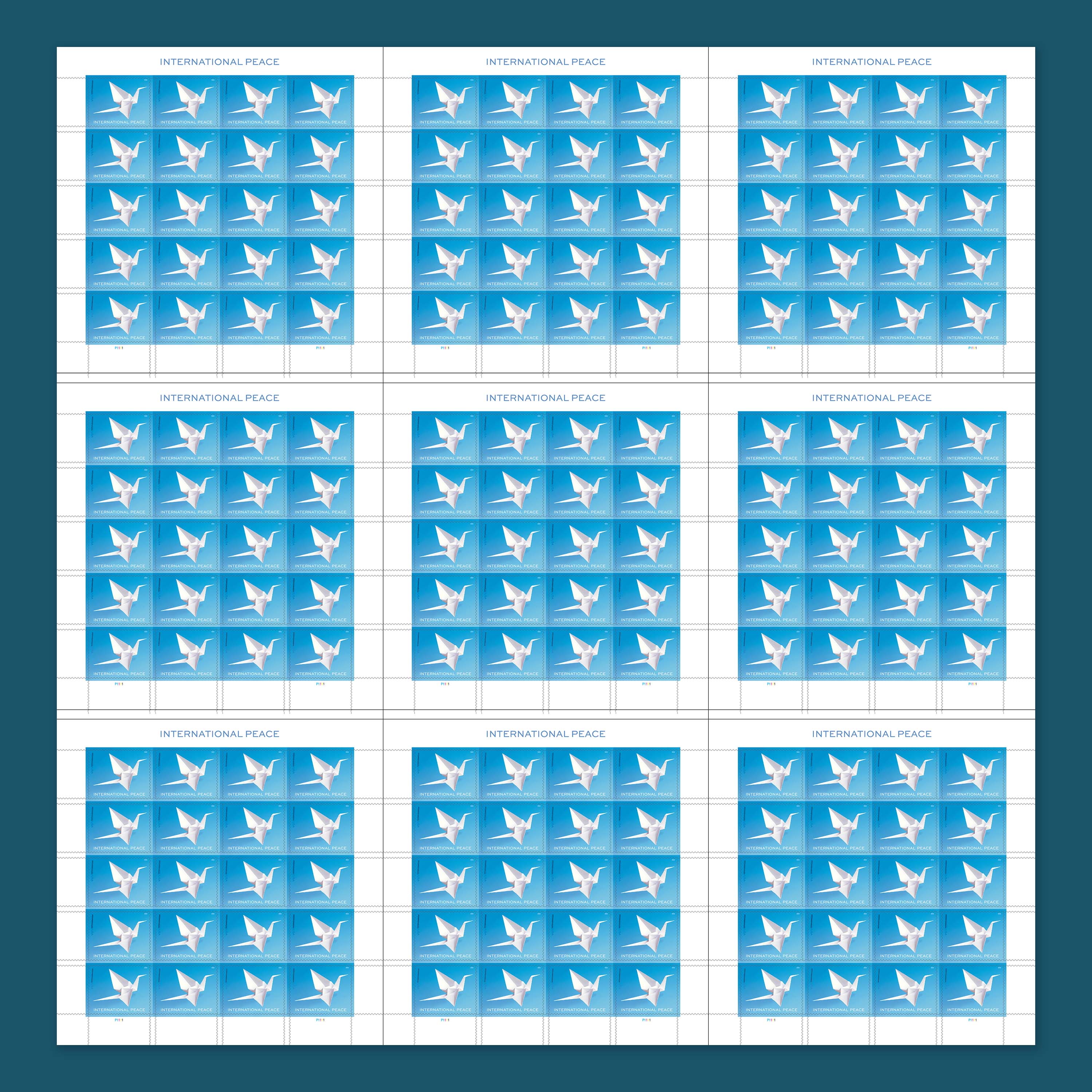 Celebrate the goal of global harmony with the International Peace Press Sheet with Die Cuts. The press sheet includes perforations and features the design from the International Peace Forever® stamp sheet.