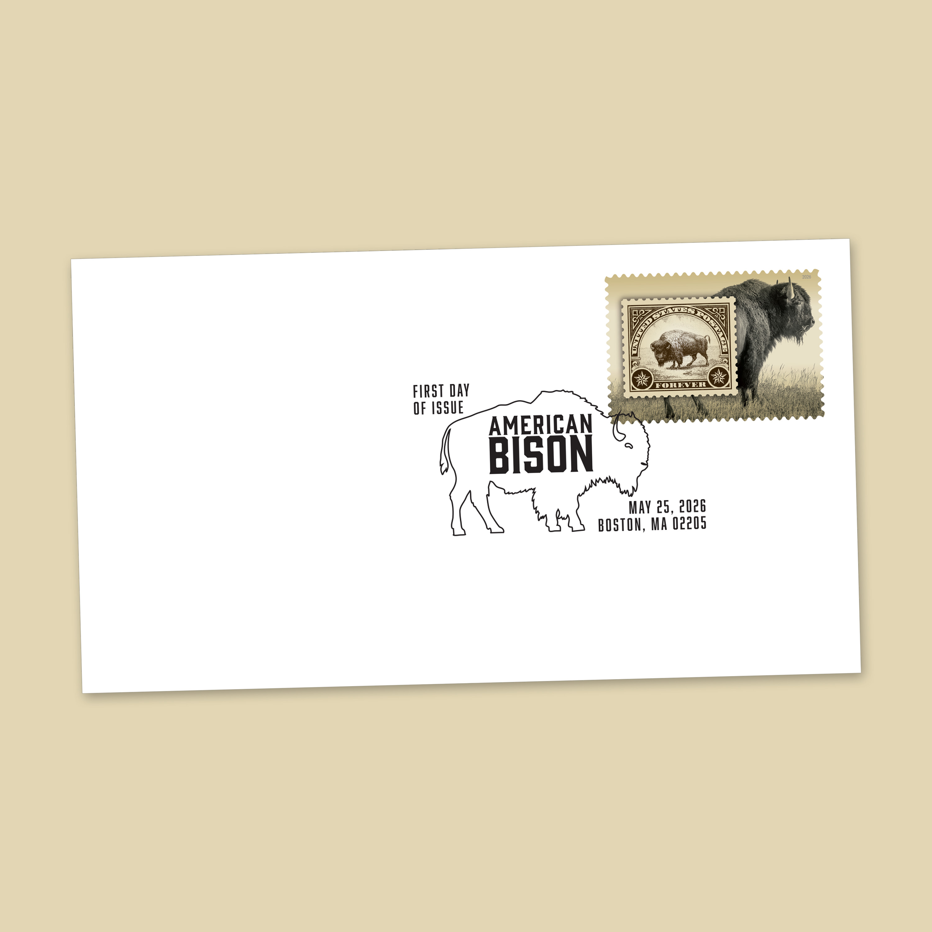 Honor the national mammal of the United States with the American Bison First Day Cover. The collectible envelope has an affixed Forever® stamp canceled with the official First Day of Issue postmark.