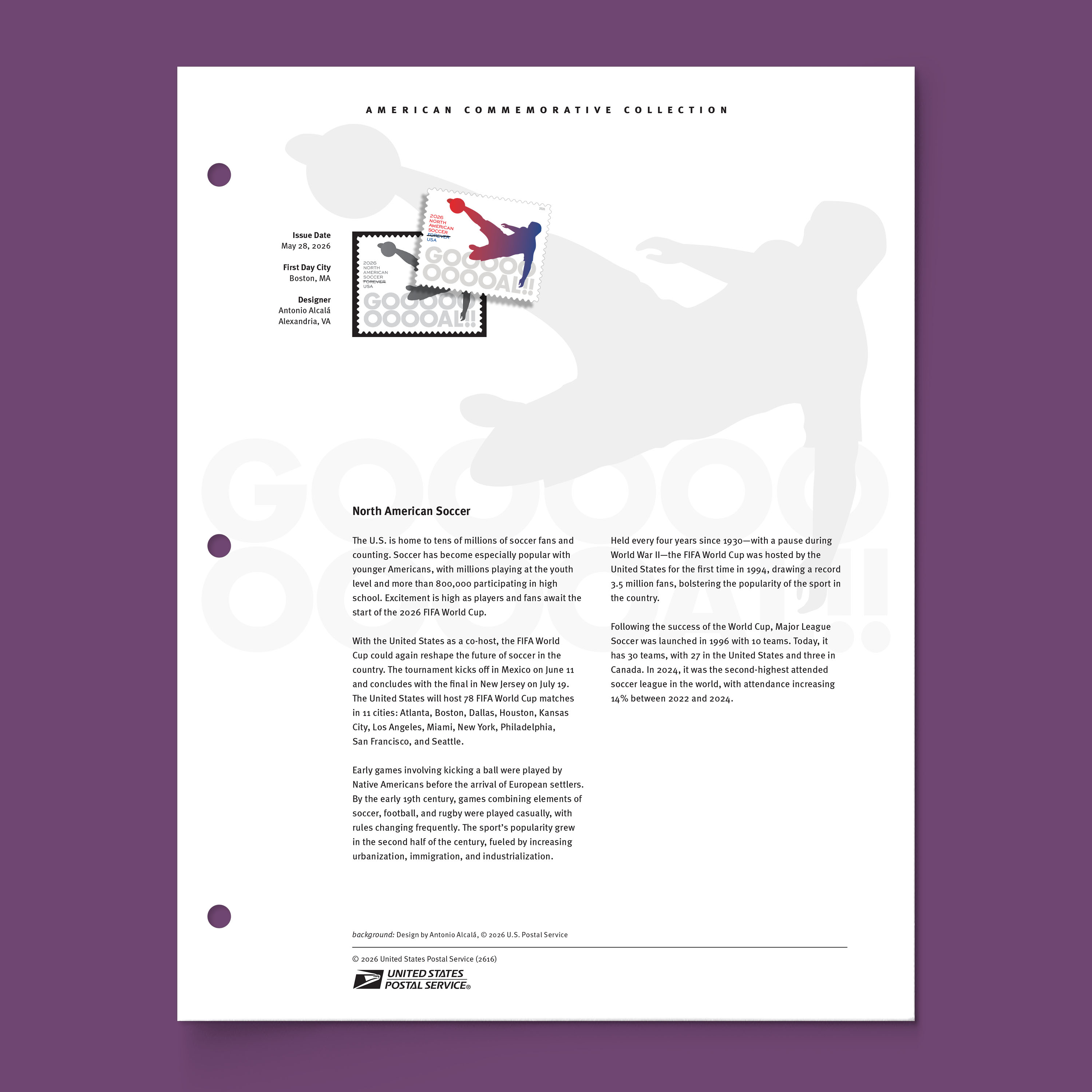 Kick off the fun of the 2026 FIFA World Cup with the North American Soccer American Commemorative Collection Page.