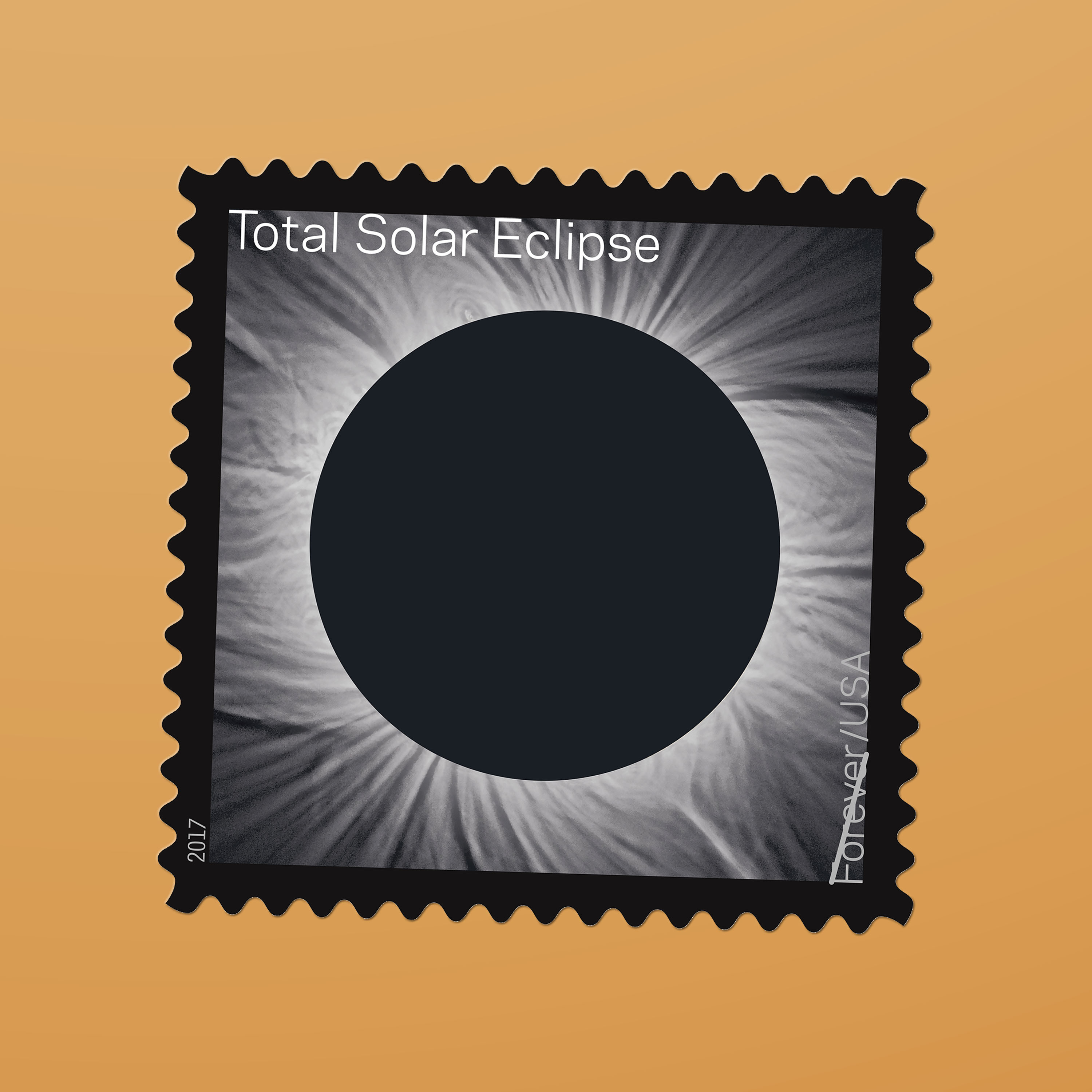 A total eclipse of the Sun occurs when the Moon completely blocks the visible solar disk from view, casting a shadow on Earth. The 2017 Total Eclipse of the Sun stamps featured an image captured in Jalu, Libya, on March 29, 2006 — and represented another first for USPS: They were printed with thermochromic ink, which reacts to the heat of one’s touch. Place a finger over the black disc on the stamp, and the ink changes from black to clear, revealing an underlying image of the Moon. Amazing! Once it cools, the image turns black again.