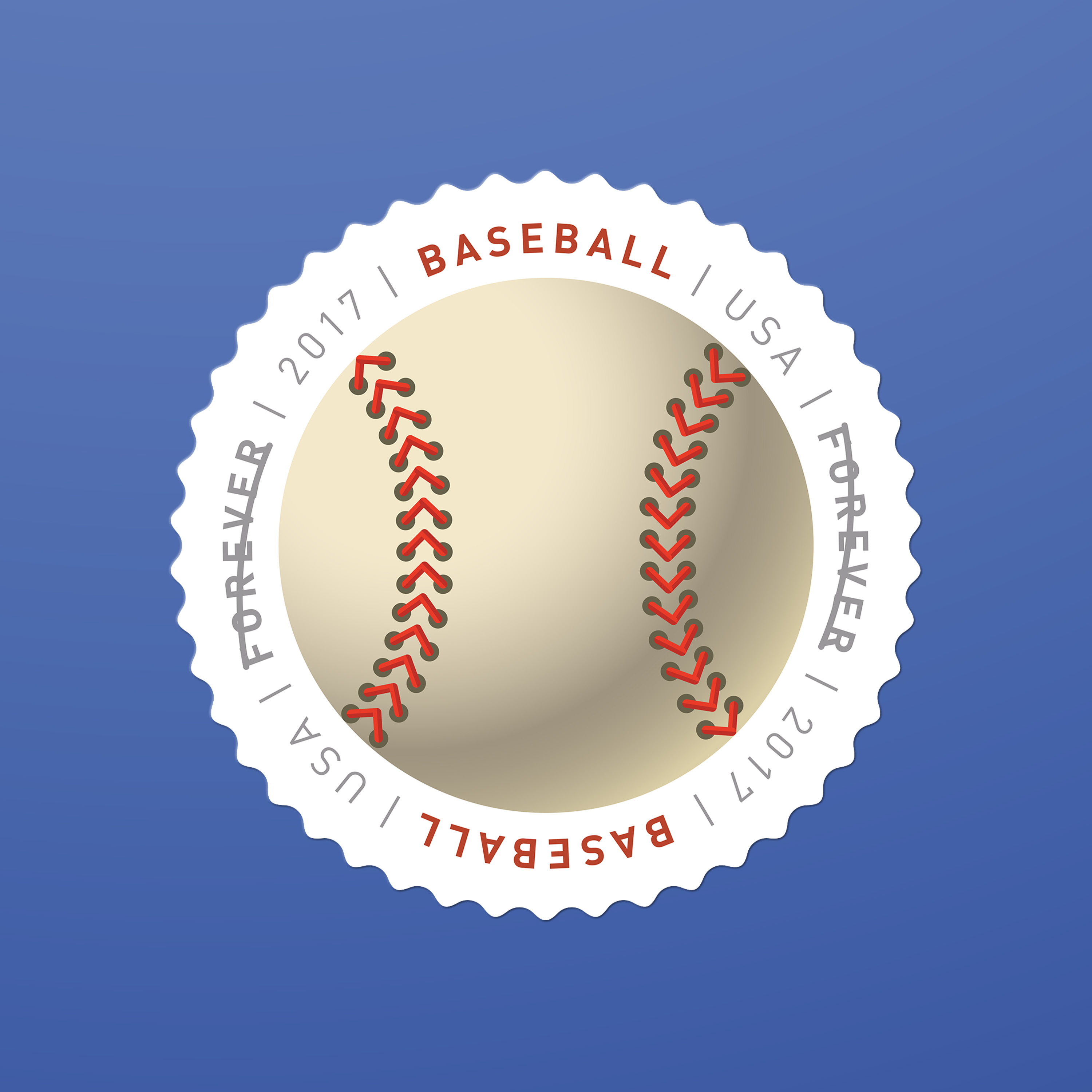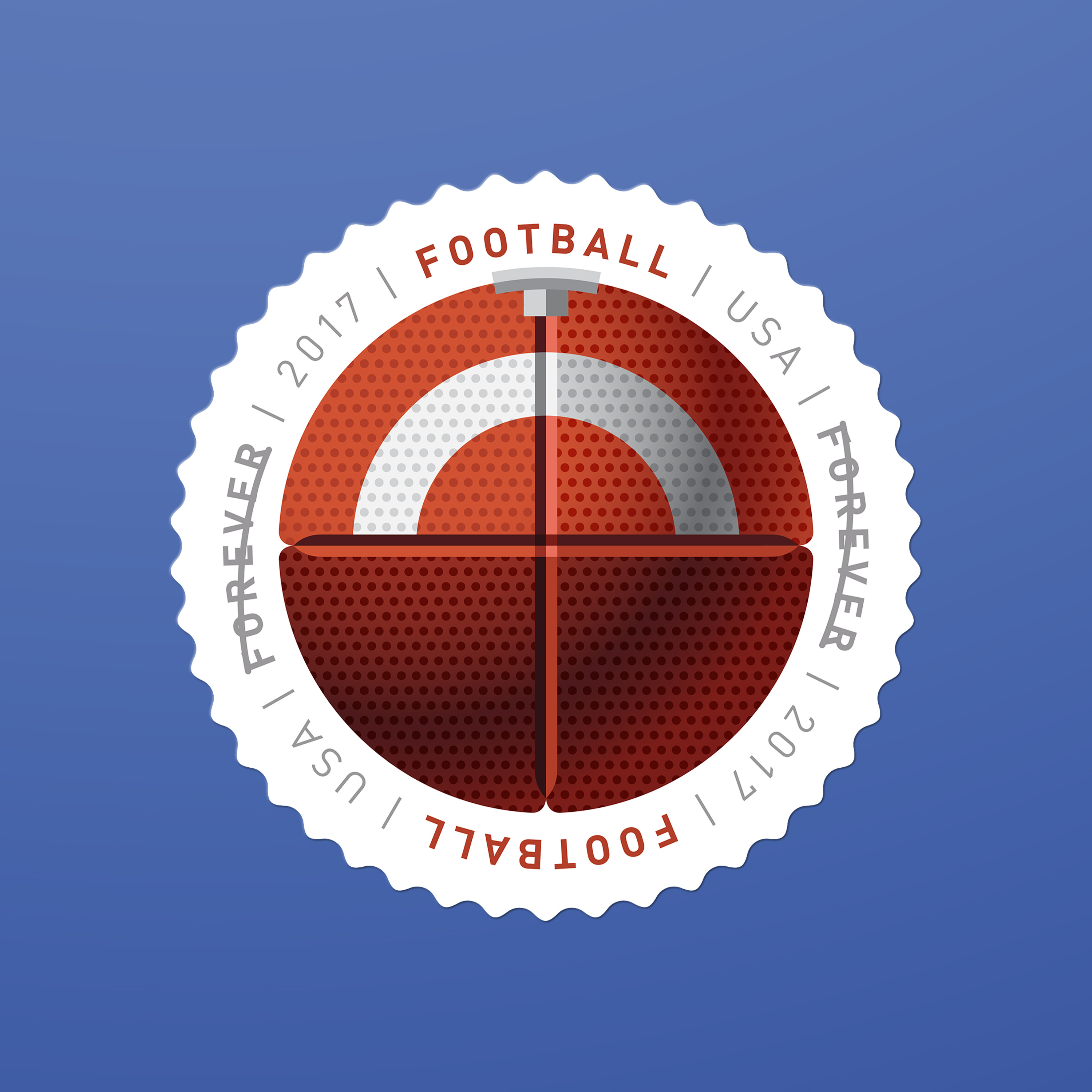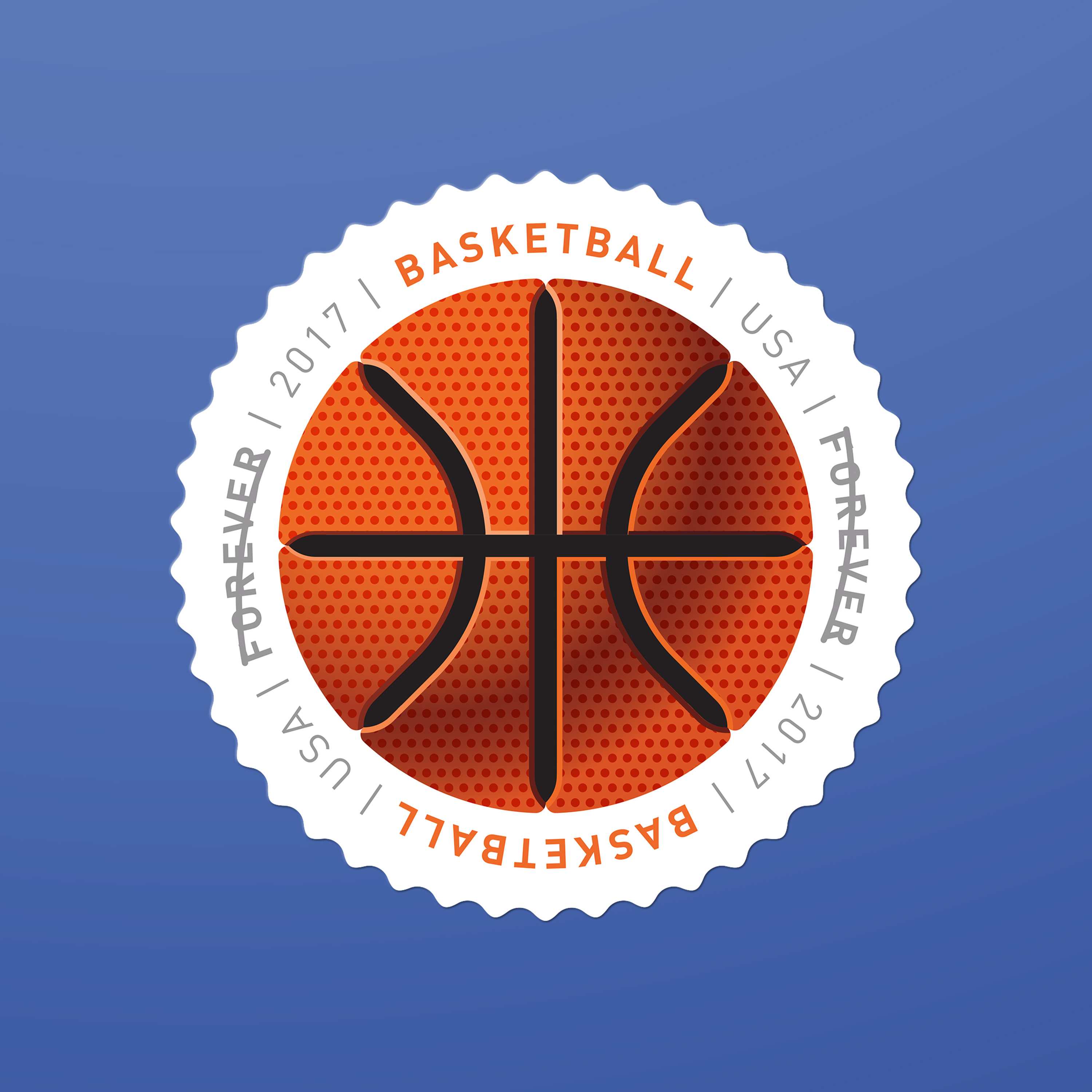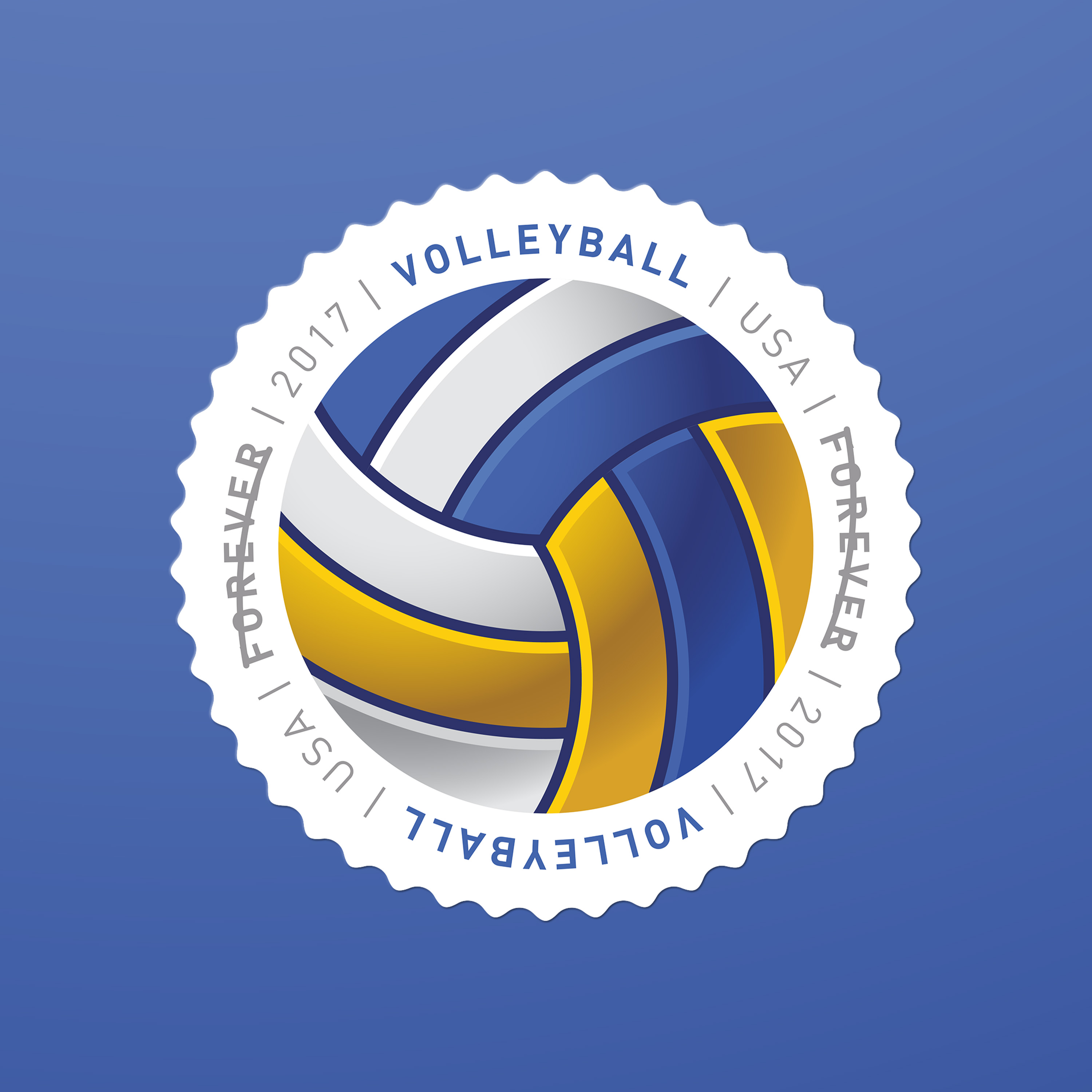 The eight different round stamps in the 2017 Have a Ball! issuance showcase illustrations of a baseball, basketball, football, golf ball, kickball, soccer ball, tennis ball, and volleyball. Annually, millions in the United States participate in the sports represented on the stamps. So what’s innovative here? Not only do the images practically fly off the stamps, they also have a textured feel, thanks to a special gloss coating applied to selected areas of each stamp during the printing process. Duefrene explains with examples: “For the baseball the coating was applied to the seams, and applied just to the black hexagons on the soccer ball.”