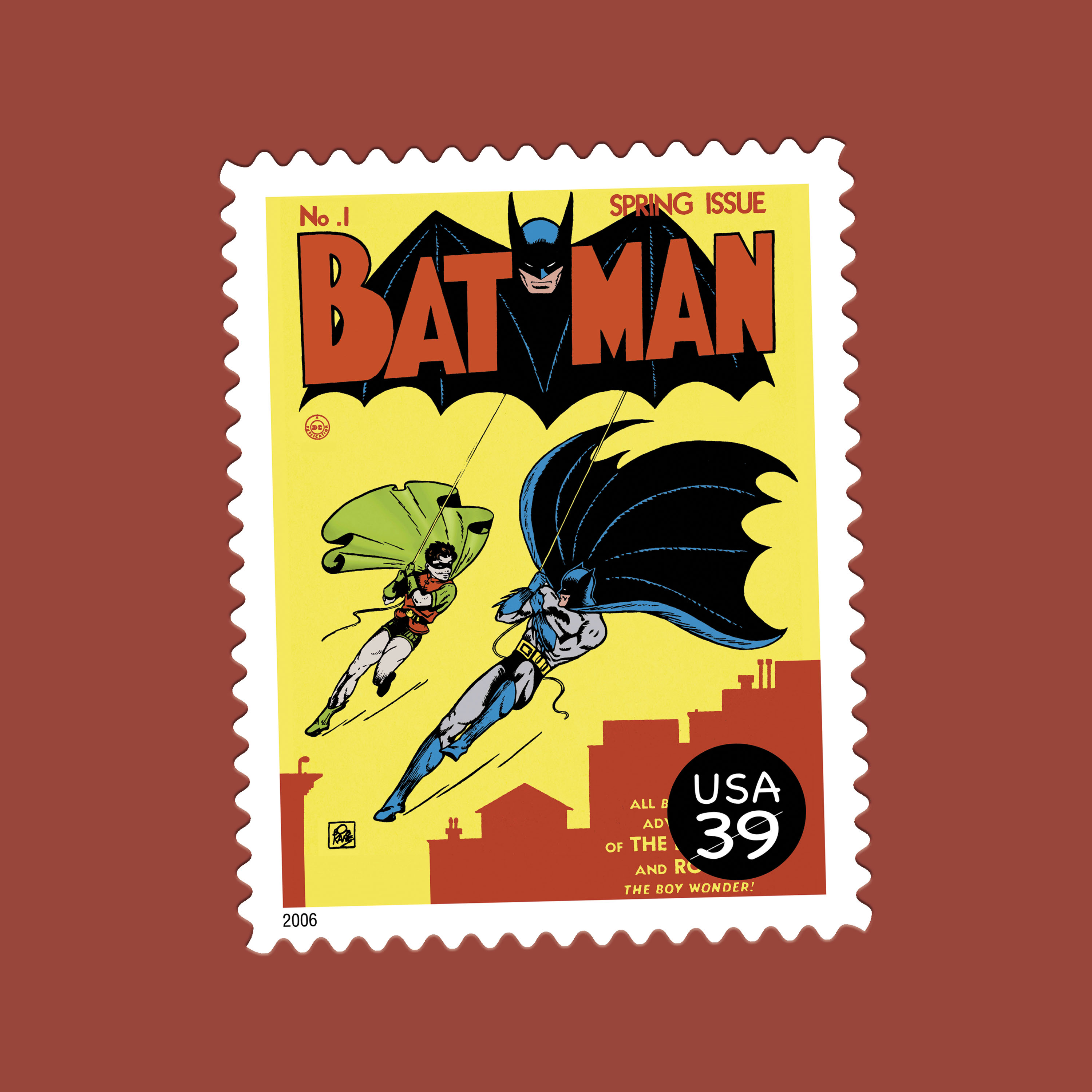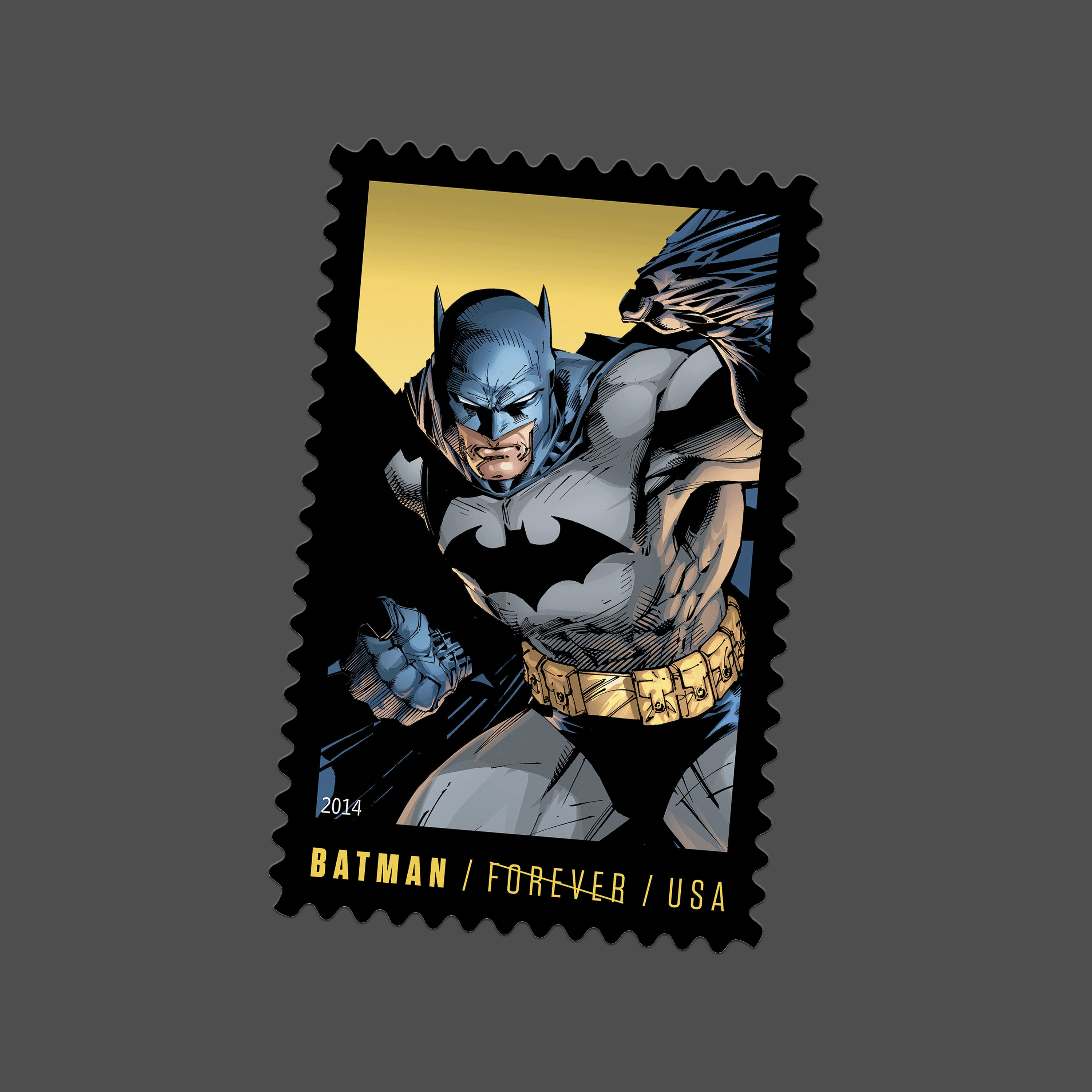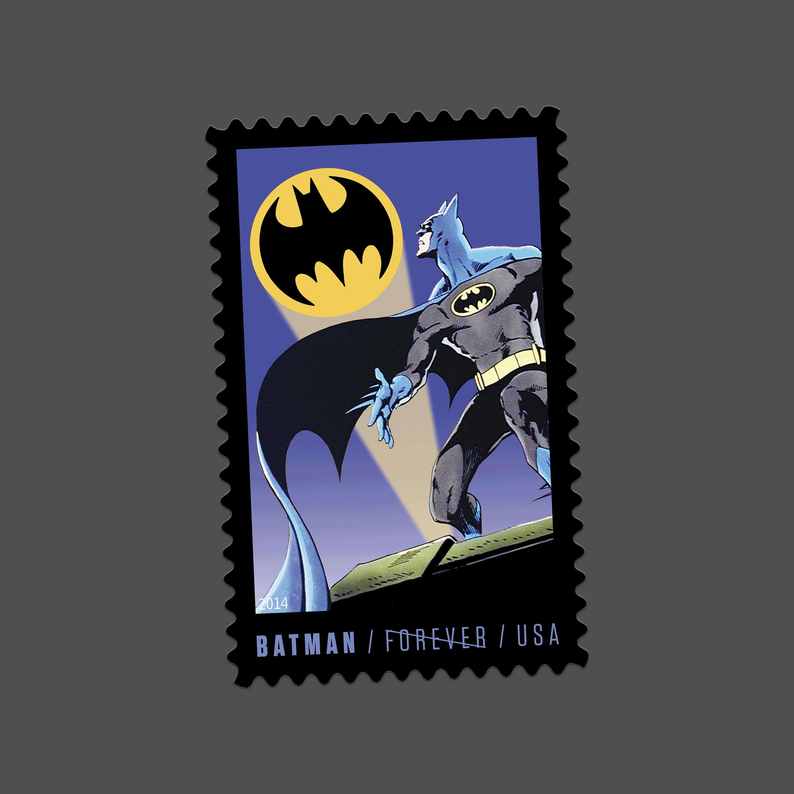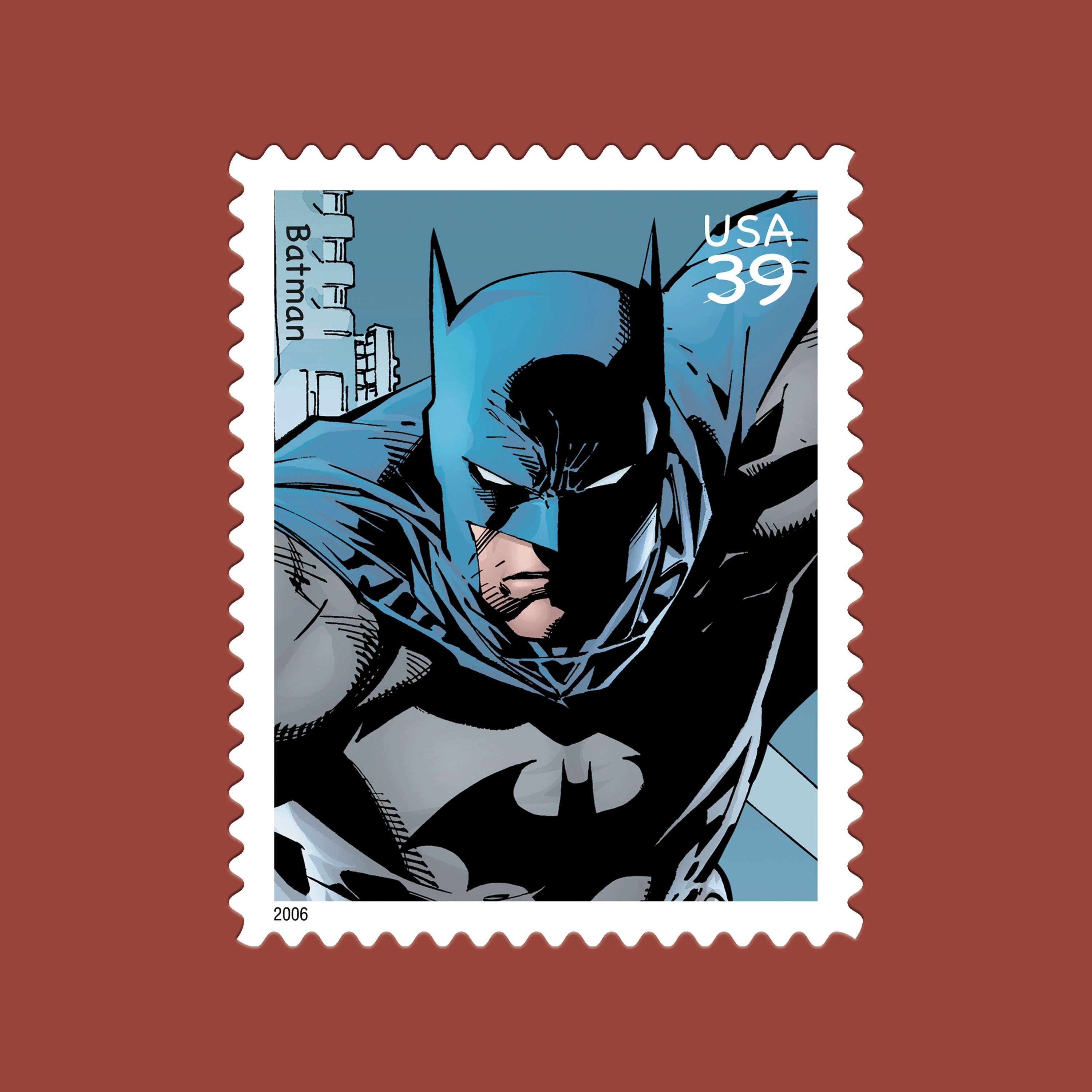 Issued in 2014, the Batman stamps marked 75 years of the Dark Knight. Unlike many of his peers, Batman relies on intellect, discipline, and observation rather than superhuman abilities, operating from the shadows of Gotham City with a detective’s focus and a strategist’s precision.