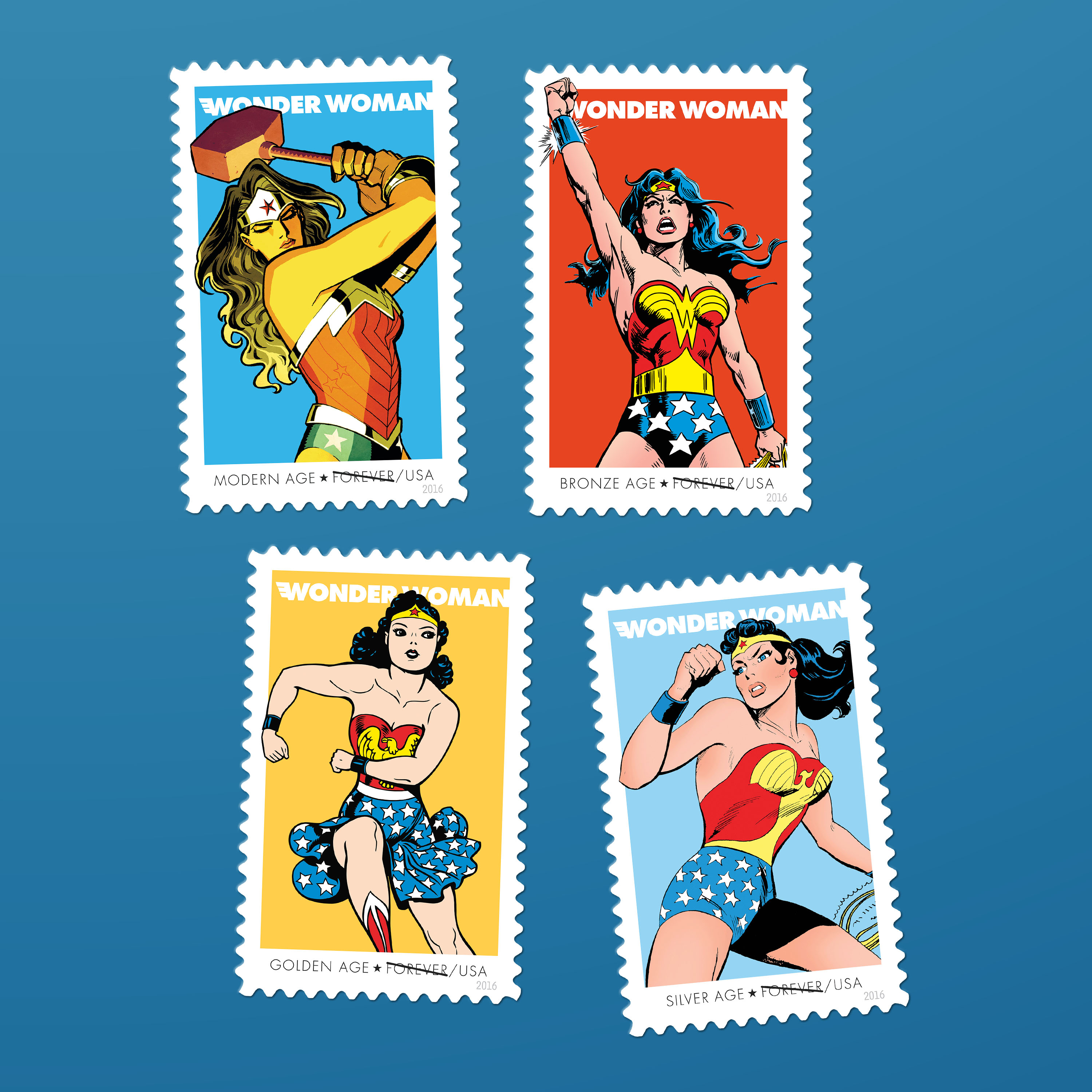 The 2016 Wonder Woman stamps celebrate 75 years of a hero who reshaped expectations from her very first appearance. Introduced during World War II, Wonder Woman's Woman’s core values include truth, strength, and compassion.