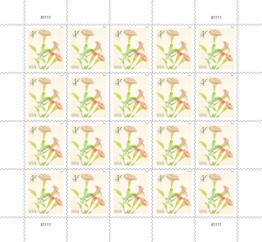 The United States Postal Service celebrates the timeless beauty of angel’s trumpets with these new four-cent definitive stamps. With their large trumpet-shaped blossoms and distinctive sweet smell, angel’s trumpets are a summer favorite.