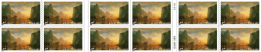 A detail of Bierstadt’s circa 1888 oil painting The Last of the Buffalo was included on the Four Centuries of American Art stamp pane, which was issued in 1998. It featured works by 20 of the most influential artists in American history.