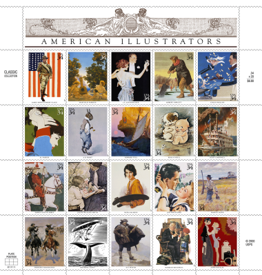 In 2001, the United States Postal Service paid tribute to the unique history of illustration in America. The American Illustrators stamp pane featured details of works by selected illustrators that were recommended by a panel of experts convened by the Society of Illustrators. The society celebrated its centennial on February 1, 2001.