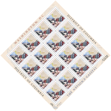 With the issuance of this stamp in 2003, the U.S. Postal Service celebrated the District of Columbia — and Washington, the dynamic city within its boundaries. The stamp is shaped like a diamond, as was the original 100-square-mile tract of land chosen to be the permanent site of the nation’s capital.