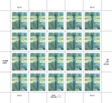This 2008 issuance features the dragonfly, one of the oldest insects in the world. Fossil records show that dragonfly species have existed for 300 million years, which places them well before dinosaurs and 150 million years before birds.