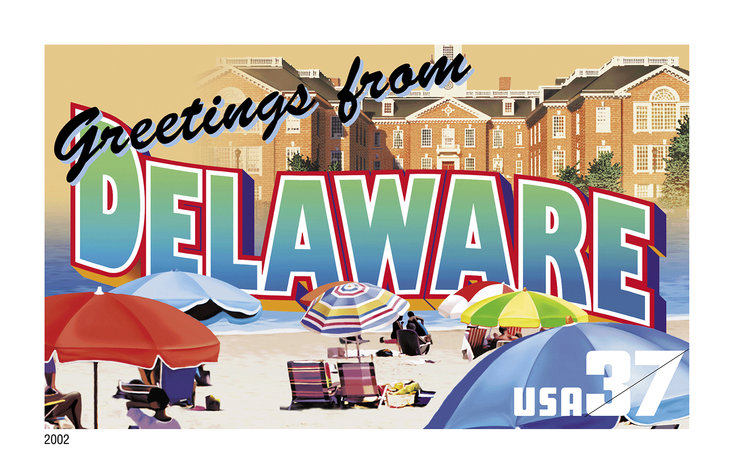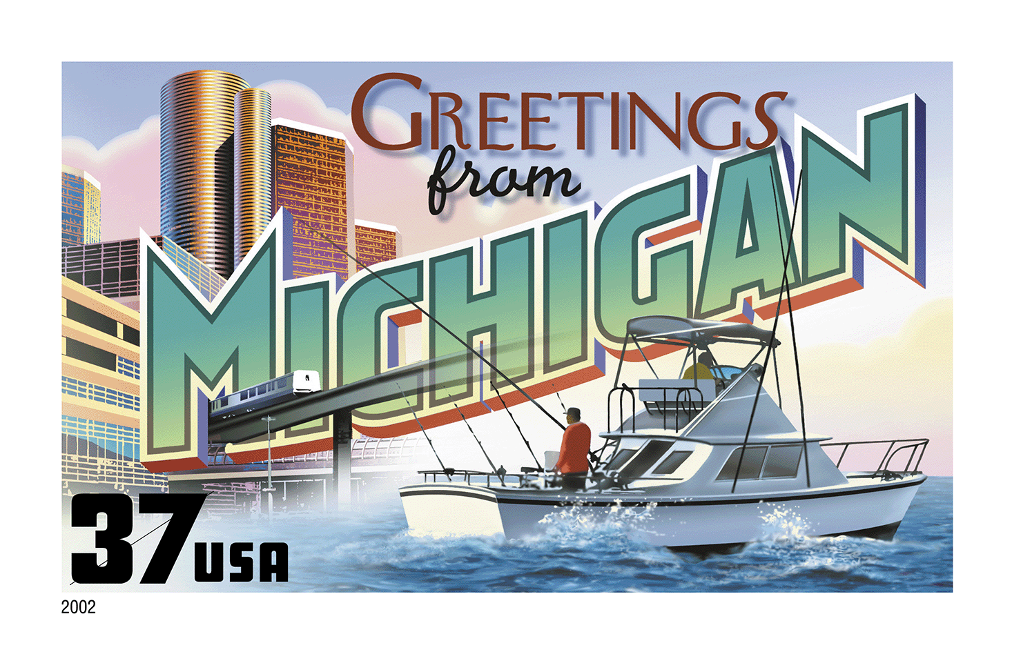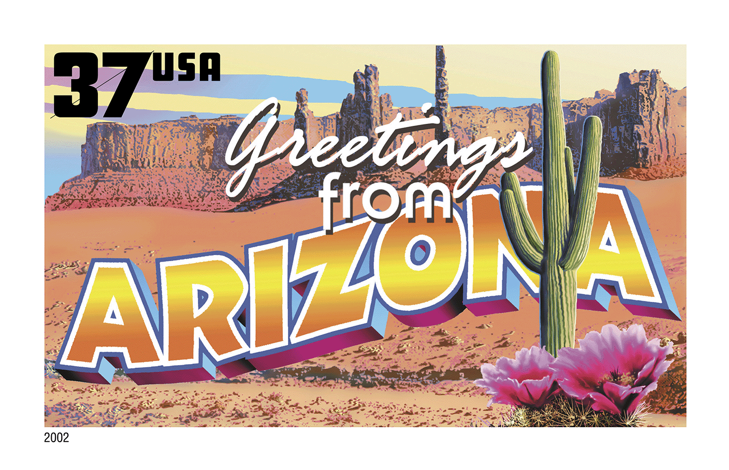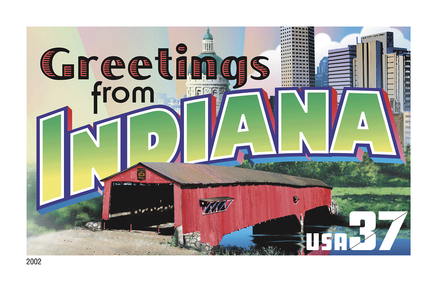 In 2002 the U.S. Postal Service issued the Greetings From America stamps — the first issuance of a pane of 50 stamps in 10 years.