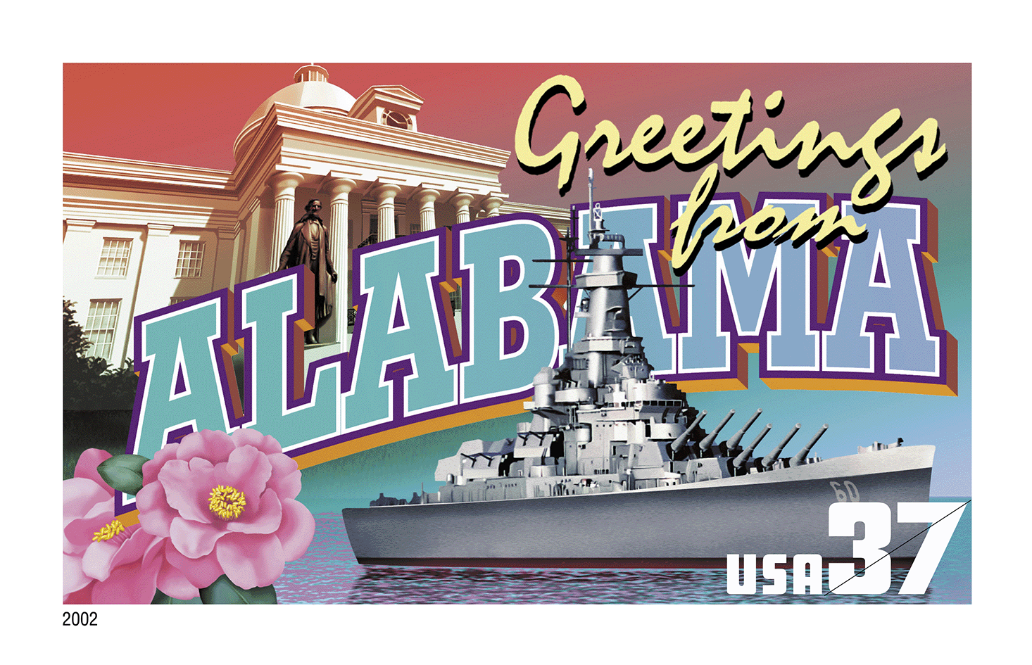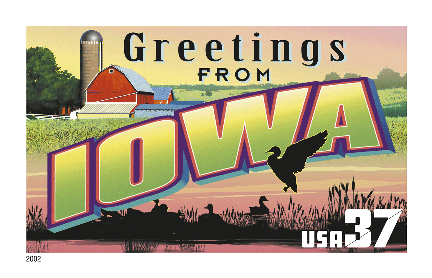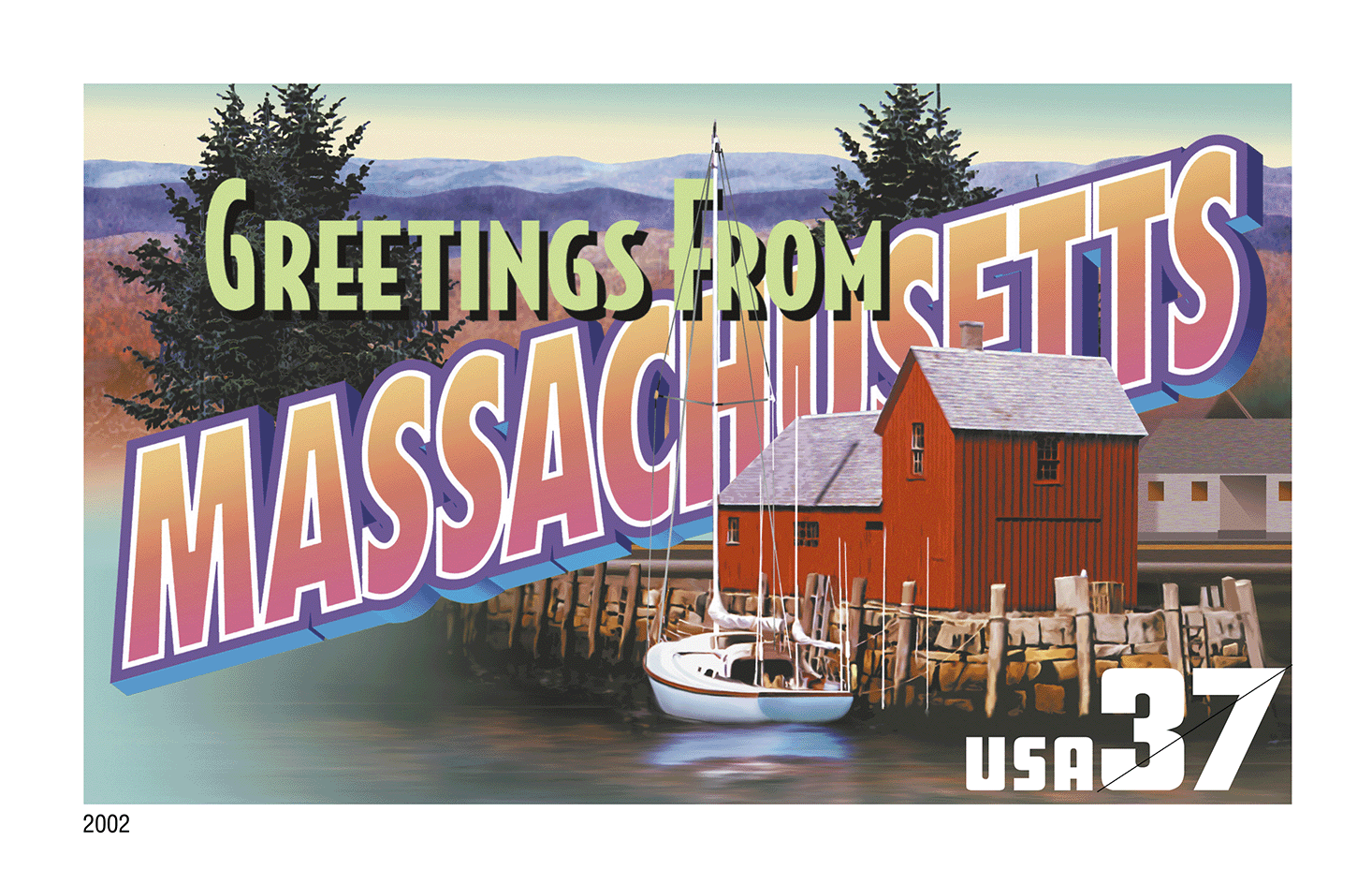 In 2002 the U.S. Postal Service issued the Greetings From America stamps — the first issuance of a pane of 50 stamps in 10 years.