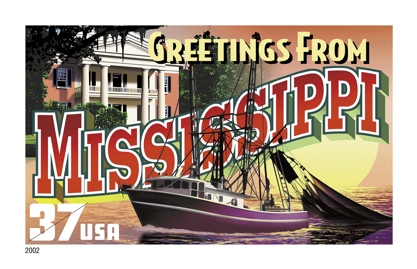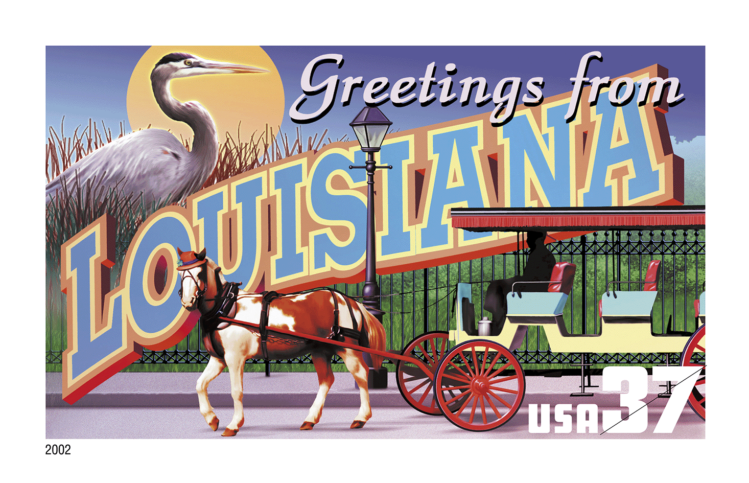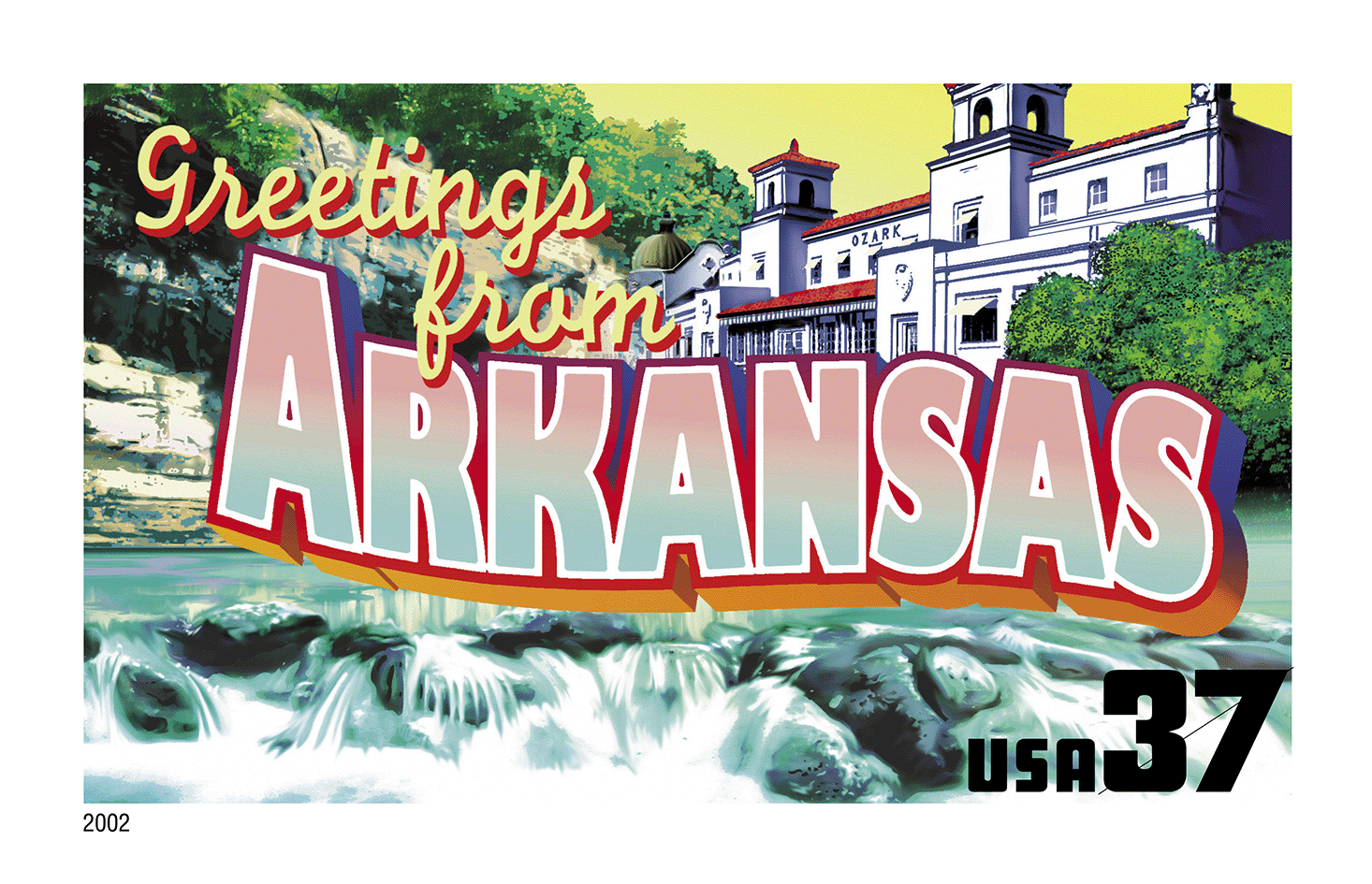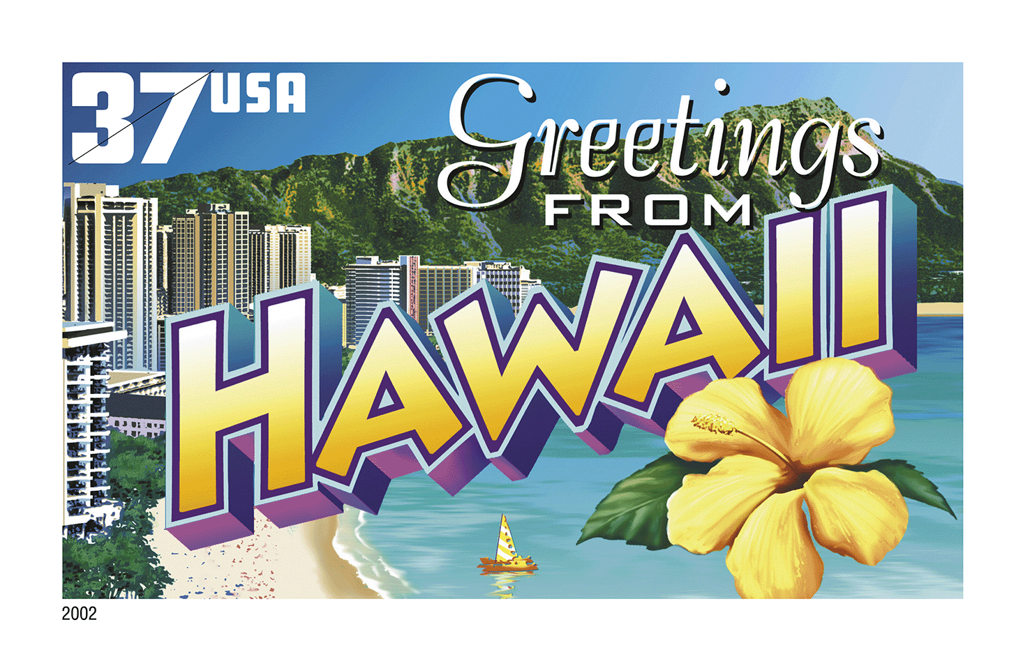 In 2002 the U.S. Postal Service issued the Greetings From America stamps — the first issuance of a pane of 50 stamps in 10 years.