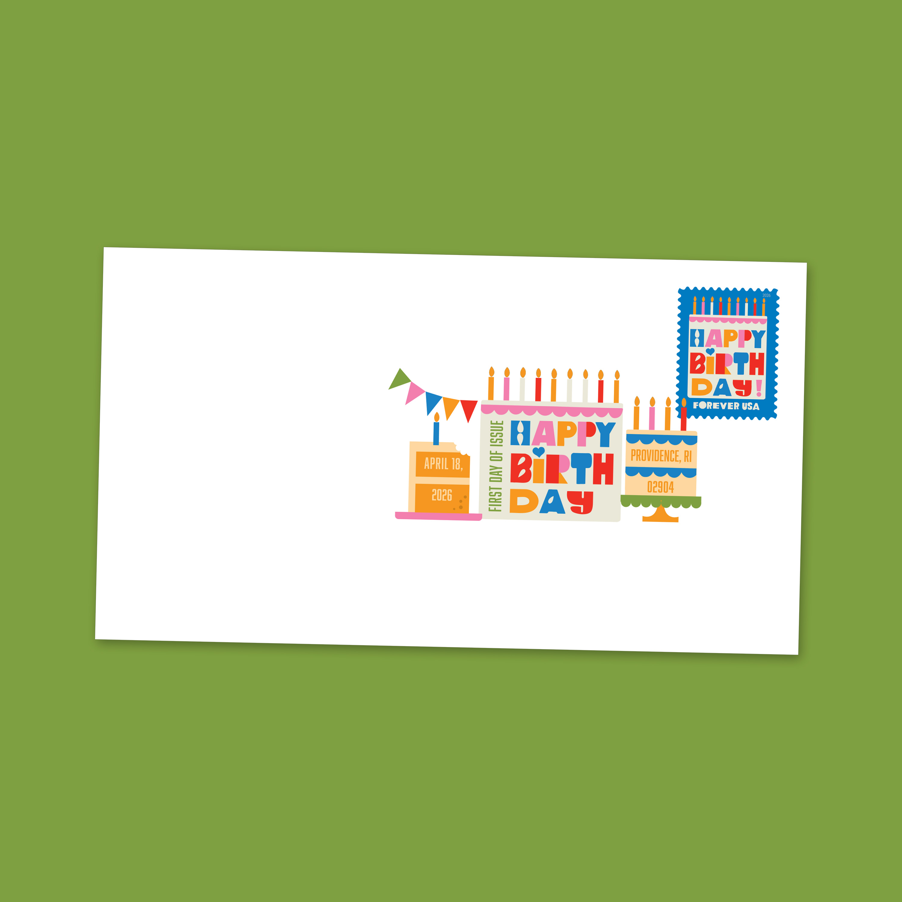 Celebrate the joy a birthday brings with the Happy Birthday Digital Color Postmark. The collectible envelope features a full-color postmark canceling the Happy Birthday Forever® stamp — the perfect keepsake for birthday enthusiasts and collectors alike.