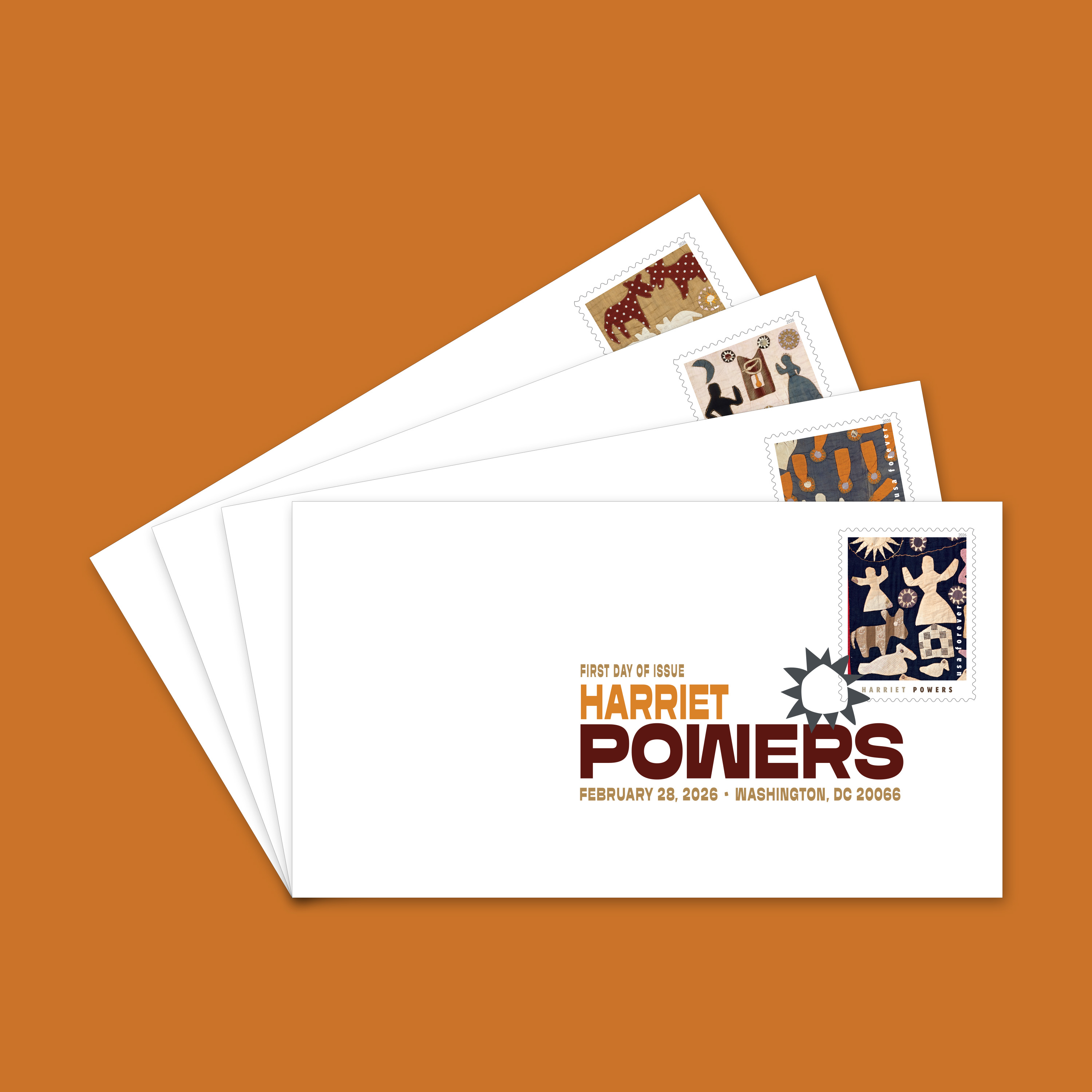 Honor a quiltmaker and formerly enslaved woman whose stitched works are celebrated as masterpieces of American folk and storytelling with the Harriet Powers Digital Color Postmarks. This set of collectible envelopes features a full-color postmark canceling the Harriet Powers Forever® stamps — the perfect keepsake for movie fans and collectors alike.