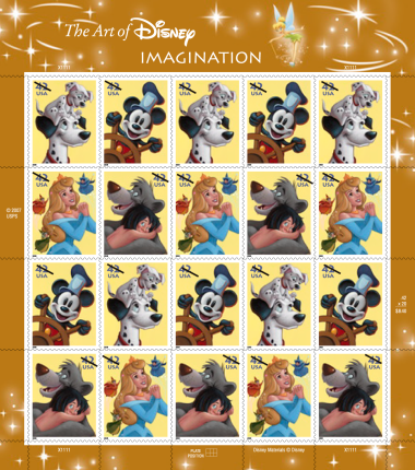 With this Art of Disney stamp pane, the U.S. Postal Service honors the theme of imagination as envisioned by Walt Disney and his studio animators.