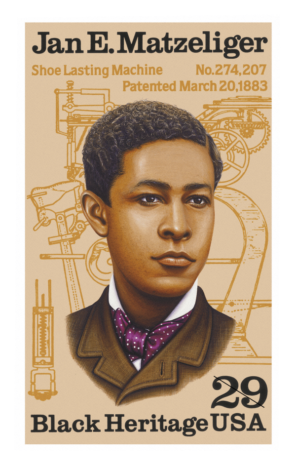 A 29-cent stamp honoring Matzeliger was issued on September 15, 1991, in Lynn, Massachusetts. Designed by Barbara Higgins Bond, the stamps were produced in the photogravure process by the American Bank Note Company and issued in panes of 50.