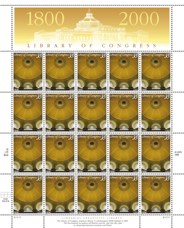 The U.S. Postal Service honors the bicentennial of the Library of Congress, established by an act of Congress and approved by President John Adams on April 24, 1800.