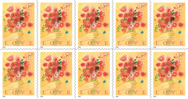 The U.S. Postal Service issued its first stamp in the Love series in 1973, and, over the years, new concepts of love have appeared on American postage stamps. The 2005 Love stamp features a hand extending a bouquet of colorful flowers, symbolic of the hope and happiness we wish for our loved ones.