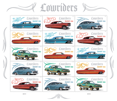 Low and slow: that’s the lowrider car. When moving, it appears to glide over the road surface, only to levitate suddenly and bounce up and down. These stamps celebrate the lowrider culture rooted in 1940s-era working-class Mexican American/Chicano communities of the American Southwest — a culture of artistically and mechanically customized cars now honored at the Smithsonian National Museum of American History and emulated by lowrider clubs in other countries.