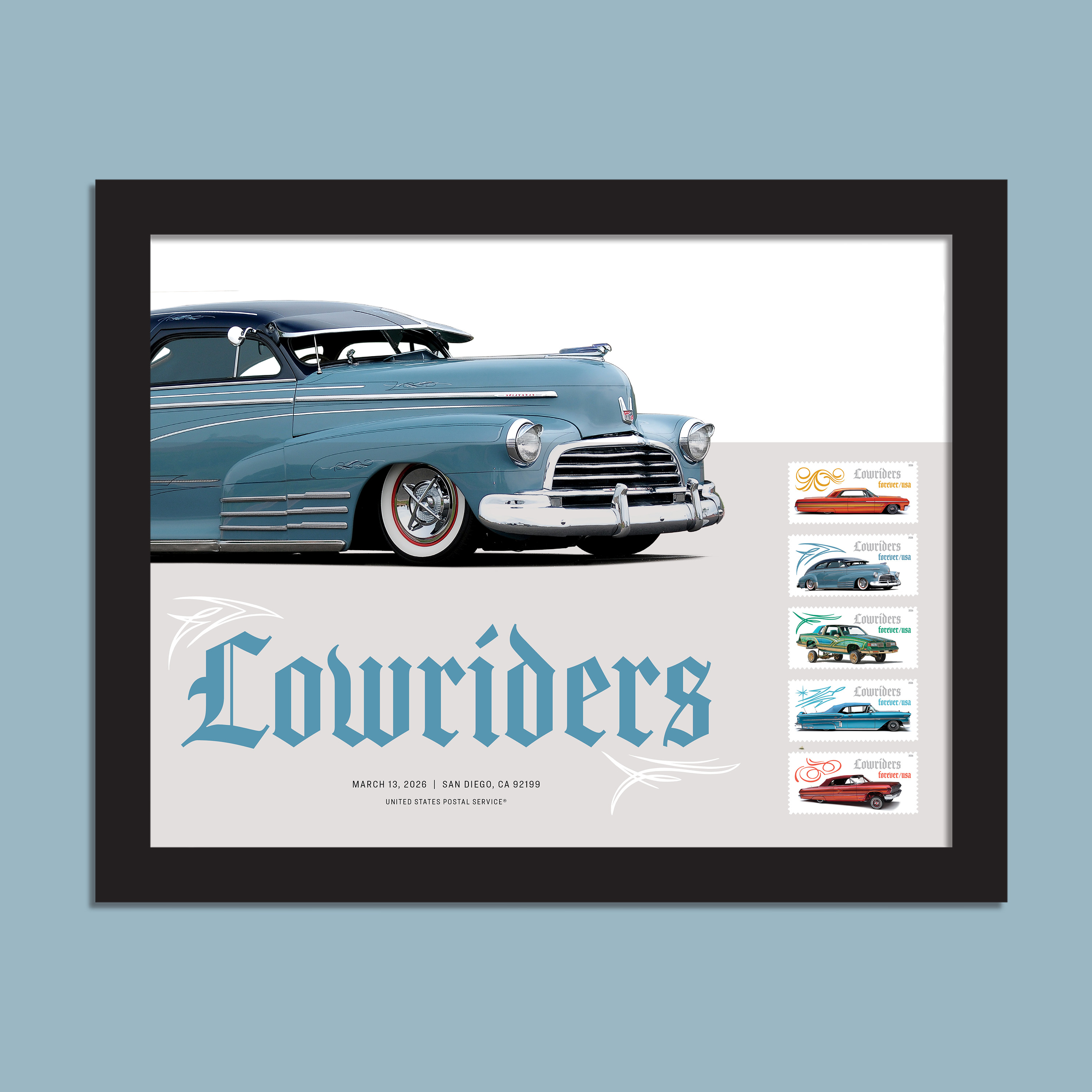 Show off dazzling car models with the Lowriders Framed Stamps. These stamps celebrate a culture that originated in the working-class Mexican American/Chicano communities throughout the American Southwest.