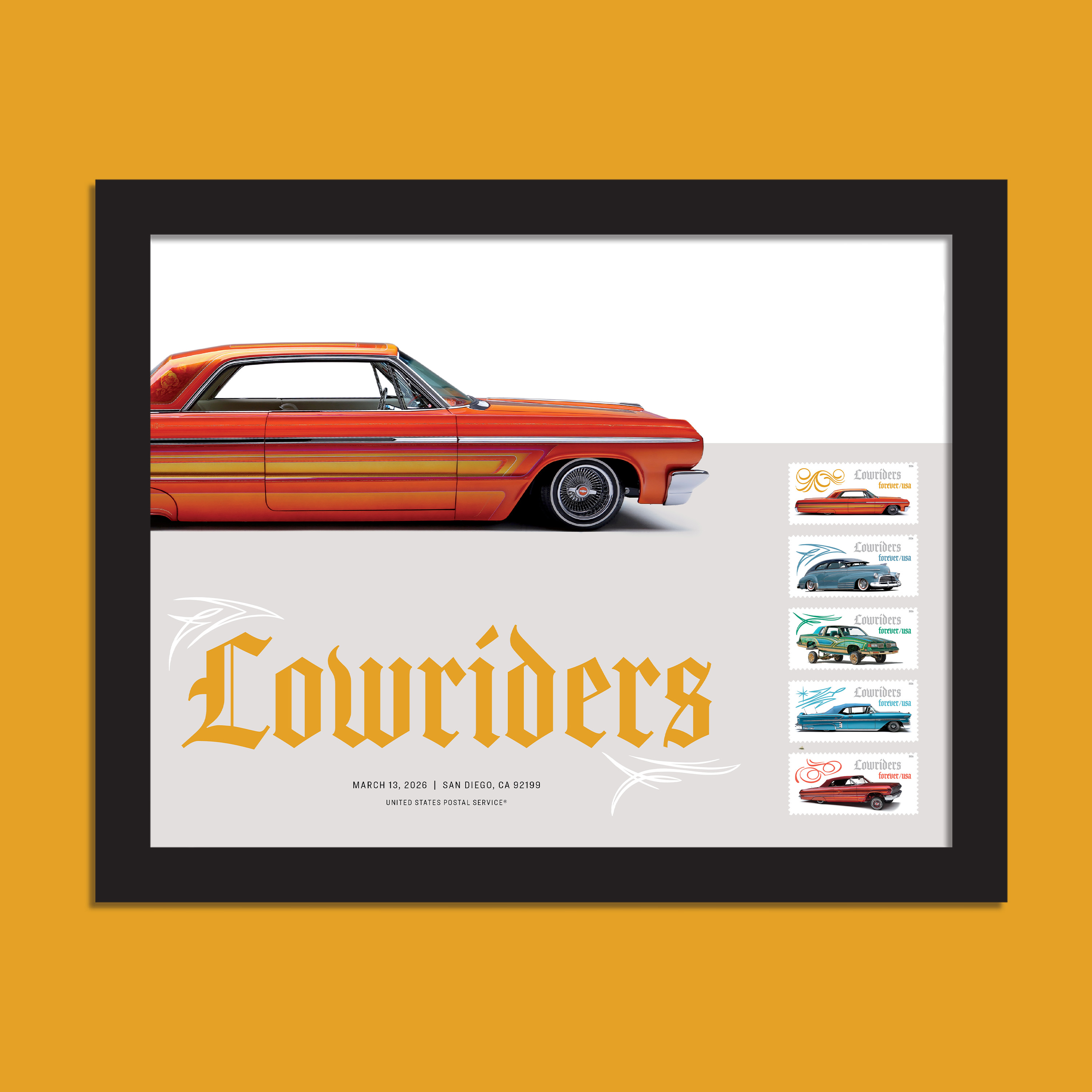 Show off dazzling car models with the Lowriders Framed Stamps. These stamps celebrate a culture that originated in the working-class Mexican American/Chicano communities throughout the American Southwest.