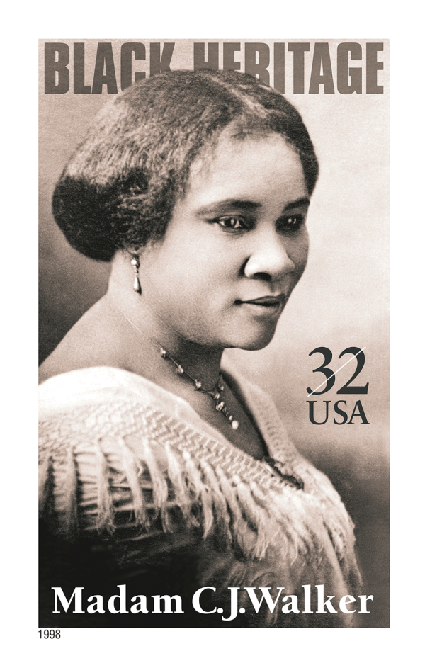 This issuance celebrates Madam C.J. Walker, who became the first American female millionaire. The success of her business created opportunities for thousands of black women in beauty shops across the nation. Madam Walker was also a dedicated philanthropist and political activist, supporting education, veteran’s issues, political rights, and equal opportunity for African Americans.