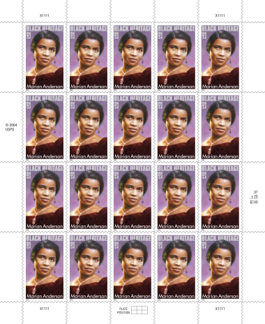 With this 28th stamp in the Black Heritage series, the U.S. Postal Service honors Marian Anderson, one of the greatest classically trained singers of the 20th century and an important figure in the struggle of black Americans for racial equality.