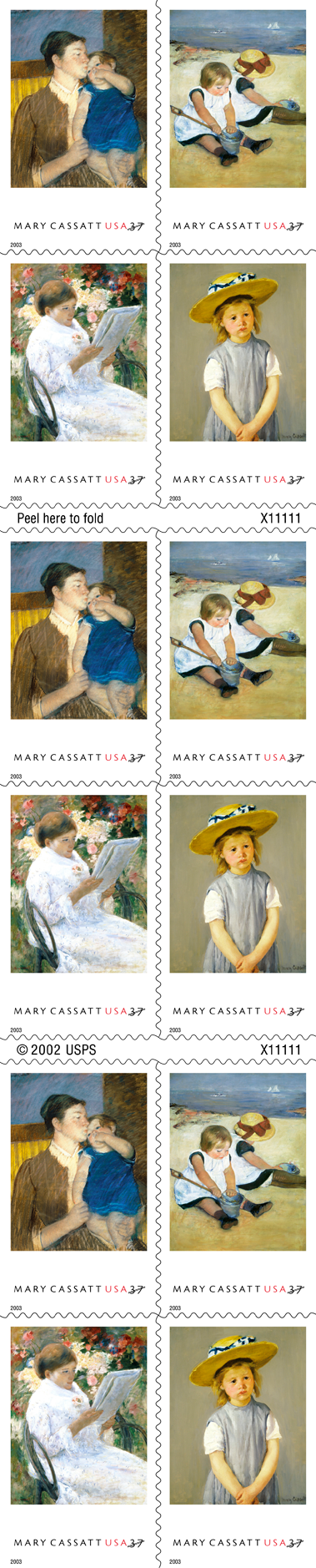 Four works of art by Mary Cassatt were chosen by art director Derry Noyes for this third issuance in the American Treasures series: