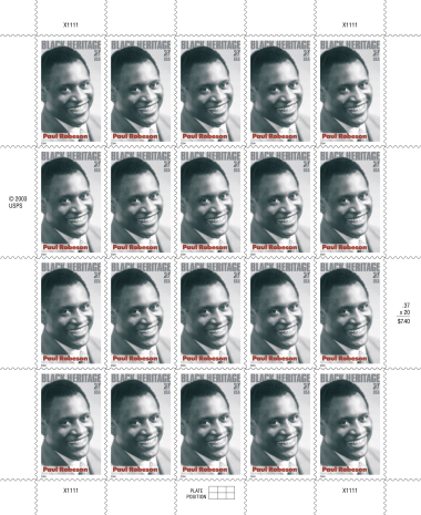 With this 27th stamp in the Black Heritage series, the U.S. Postal Service honors Paul Robeson, who achieved worldwide renown as an actor, singer, athlete, and activist. Robeson is remembered not only for his prodigious talents as a performer, but also for his tireless and uncompromising commitment to civil rights and social justice.