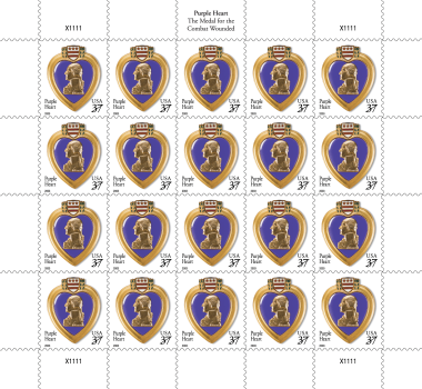 With the issuance of the Purple Heart stamp, the U.S. Postal Service honors the sacrifices of the men and women who serve in the U.S. military. The Purple Heart is awarded in the name of the President of the United States to members of the U.S. military who have been wounded or killed in action. According to the Military Order of the Purple Heart, an organization for combat-wounded veterans, the medal is "the oldest military decoration in the world in present use and the first award made available to a common soldier."