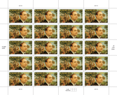 With the 21st stamp in the Literary Arts series, the U.S. Postal Service honors poet, novelist, and educator Robert Penn Warren on the centennial of his birth. This distinguished man of letters was America’s first official poet laureate (1986–87) and a three-time recipient of the Pulitzer Prize, the only writer, as yet, to have won the prize in poetry (Promises: Poems, 1954–1956, in 1958, and Now and Then: Poems, 1976–1978, in 1979) as well as fiction (All the King’s Men, 1947).