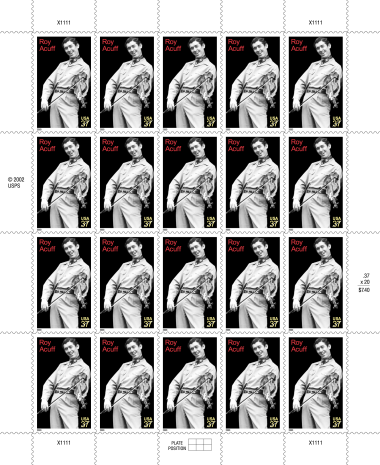 This 2003 stamp honors Roy Acuff, often called the King of Country Music. As one of country music’s first true superstars, Acuff helped turn the Grand Ole Opry into the nation’s foremost country music institution, and his role in the music publishing business helped make Nashville, Tennessee, the country music capital of America.