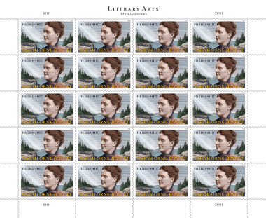 The 35th stamp in the Literary Arts series honors Sarah Orne Jewett (1849–1909), a foundational figure in American literary regionalism who published hundreds of short stories and some 18 novels, as well as poetry and essays. Often drawing inspiration from people she knew in her Maine village, Jewett created intimate portrayals of her characters and of the landscape and culture that shaped them. In her work she sought to highlight the positive spirit of the region, an enduring model of harmony between individualism and communal values. Her strong female characters have led to a renewed interest in her work.