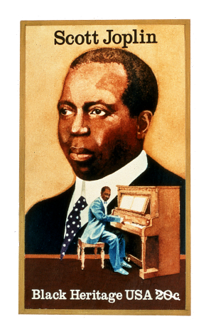 A 20-cent commemorative stamp honoring ragtime composer Scott Joplin was issued June 9, 1983, in Sedalia, Missouri. The First Day of Issue ceremony was held at the former site of the Maple Leaf Club, where Joplin, the King of Ragtime, frequently performed.