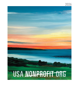 “Landscapes and sunsets seem to fall neatly into this category as possible subject matter,” Noyes says. “Sunsets are universally appealing. We all gravitate to their beauty and the changing colors of the sky. A postage stamp that celebrates looking out over a body of water at the end of a summer day seems to fit well for a nonprofit organization.”