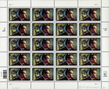 This stamp — the 17th in the Literary Arts series — commemorated the centenary of Thomas Wolfe’s birth on October 3, 1900, in Asheville, North Carolina. Wolfe graduated from the University of North Carolina, Chapel Hill, in 1920 with a bachelor of arts degree. He continued his formal education at Harvard University which granted him a master of arts degree in 1922.