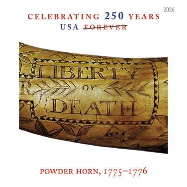 Created for the 250th anniversary of the American Revolution, this prestige booklet brings the past into focus through 10 compelling objects from the era. Inside are 20 First-Class Forever® stamps, arranged in two identical blocks of 10, featuring items ranging from a soldier’s powder horn and the commander in chief’s flag to a patriotic signboard and wampum treaty belt. Together, they tell a story of everyday choices and extraordinary events that helped shape the United States.
