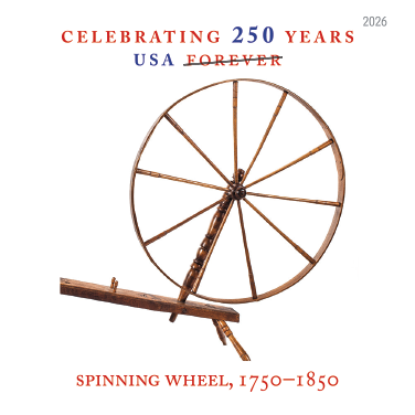 The prestige booklet enriches the experience, pairing the stamps with images and text that make the American Revolution feel immediate and tangible. “We felt a prestige booklet was essential because these objects are evocative on their own, but they need context to reveal their full power,” says Kessler. Historical background explains how a spinning wheel reflects the push for self-reliance and why the Badge of Military Merit — precursor to the Purple Heart — held deep significance for ordinary soldiers. It also explores the stories behind other artifacts, revealing how they illuminate the ideals, struggles, and daily realities of people who lived through the Revolutionary era.