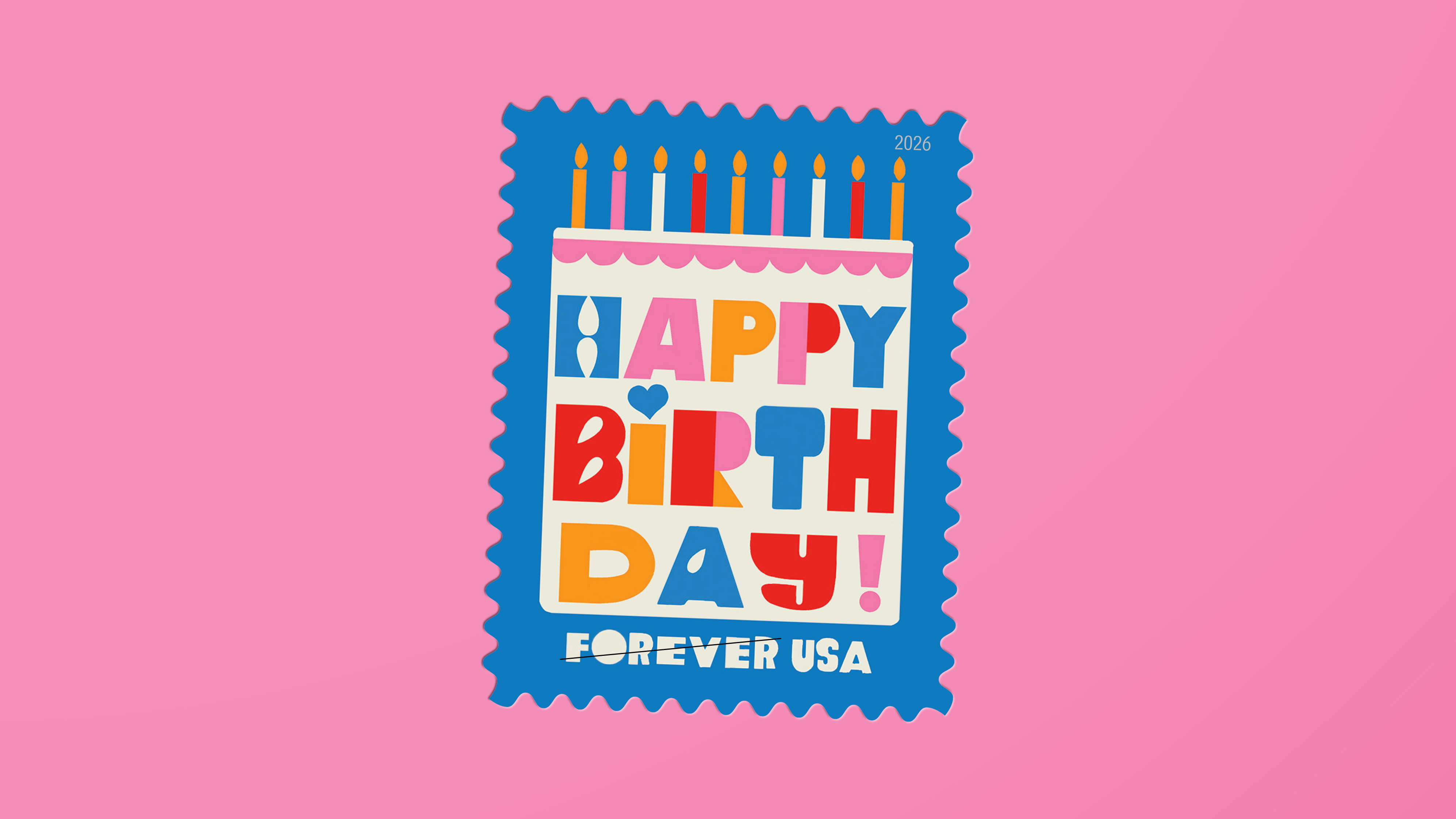 An artist and art director talk design for the latest Happy Birthday stamp.